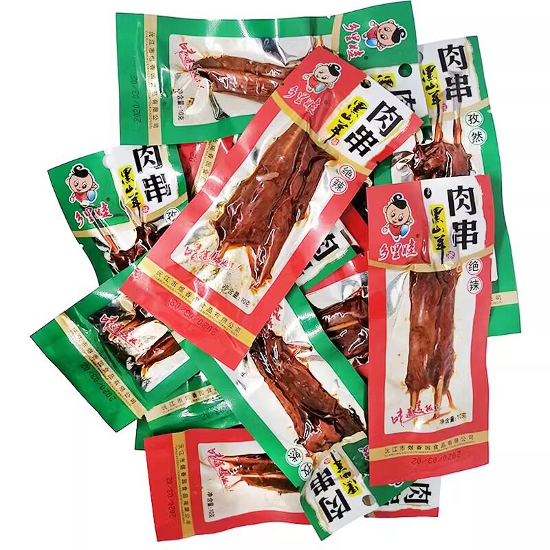 📚 乡里娃黑山羊味 肉串 湖南特产零食休闲聚会小吃开袋即食风干鸭肉