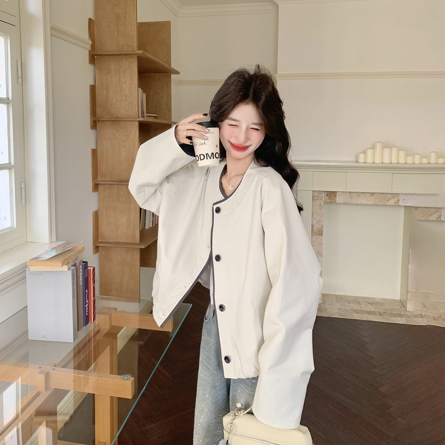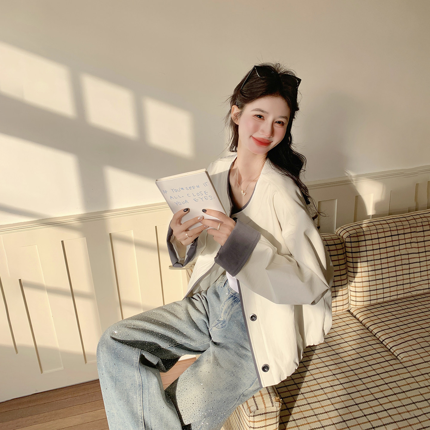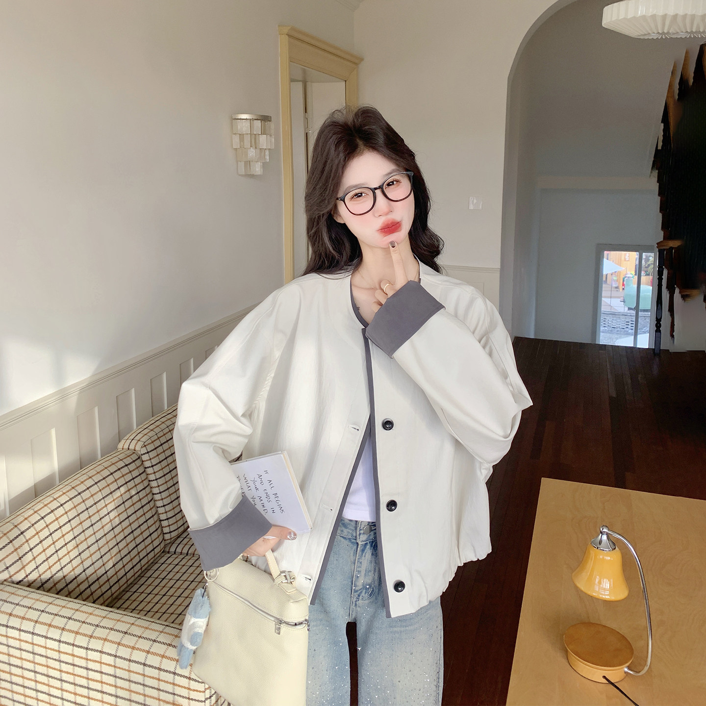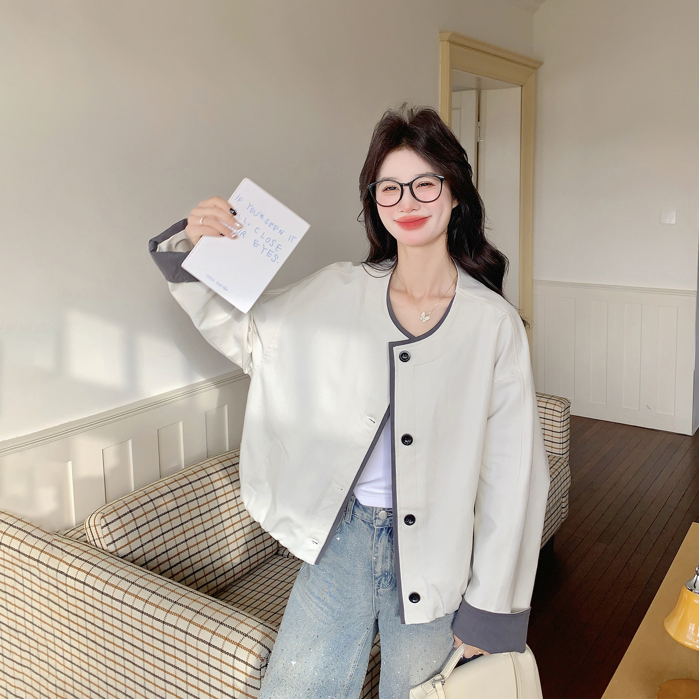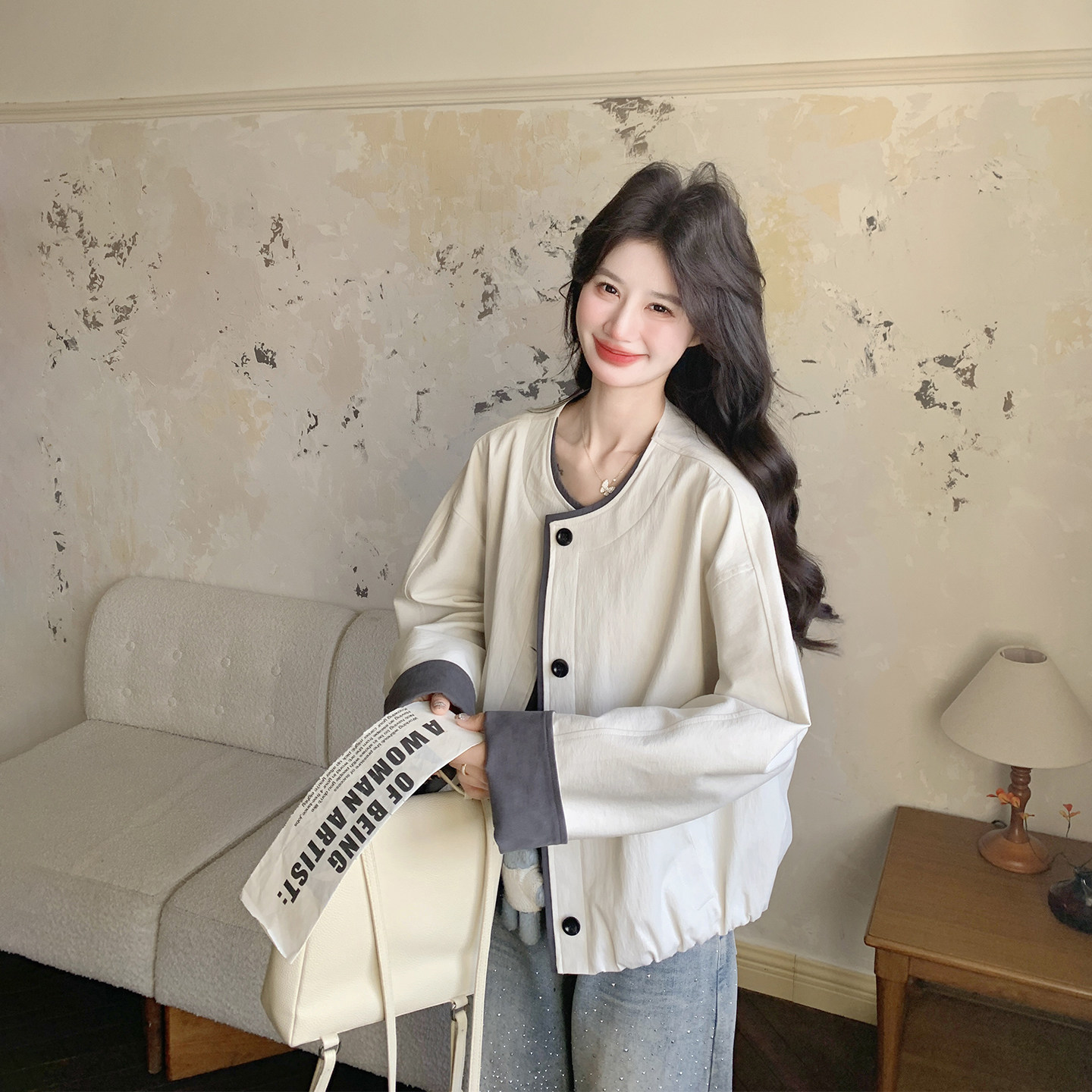 📚 撞色拼接减龄米白色短款外套女春季2026新款巨好看小个子超火夹克