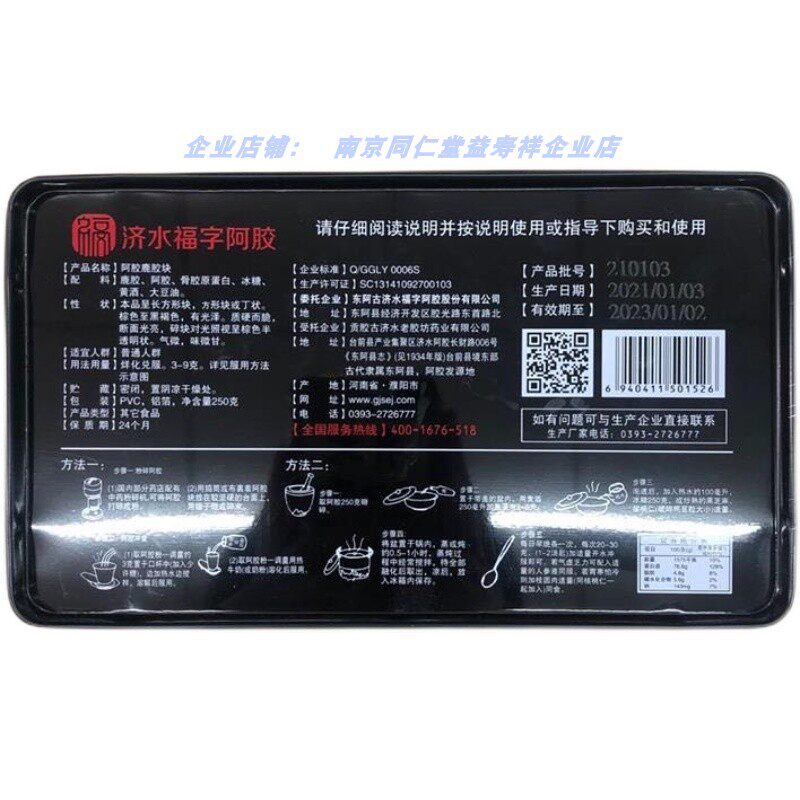 📚 济水福字鹿胶阿胶古济水鹿胶块另有龟胶阿胶块铁盒250克买一送一