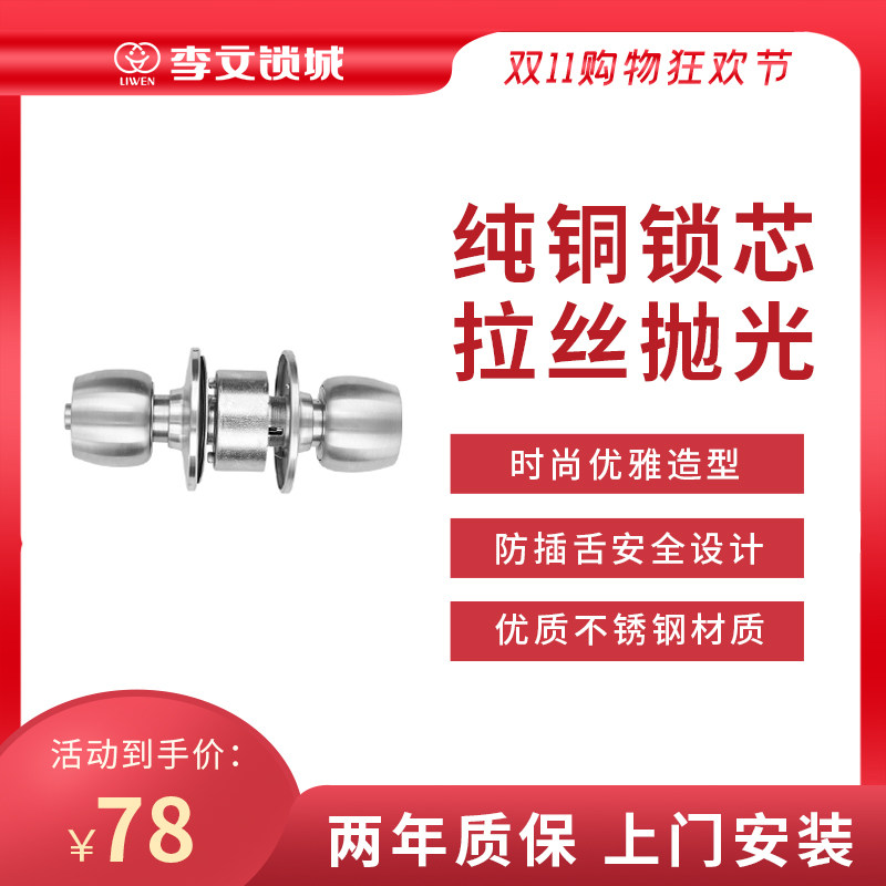 📚 李文锁城华锋球形木门锁家用室内卧室房间卫生间执手锁不锈钢门锁
