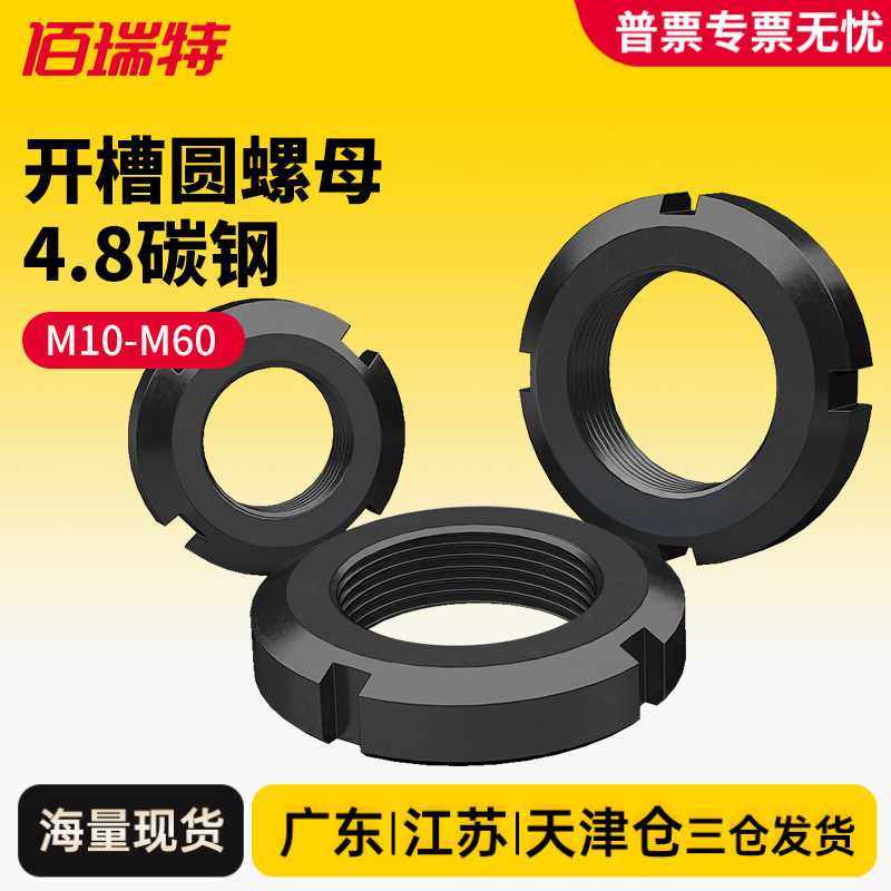 📚 国标GB812圆螺母开槽螺母止退螺帽四槽螺丝帽M10M12M16M20-M60