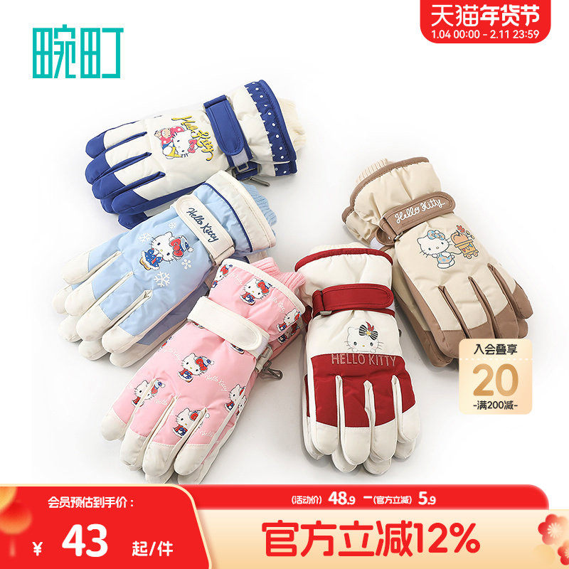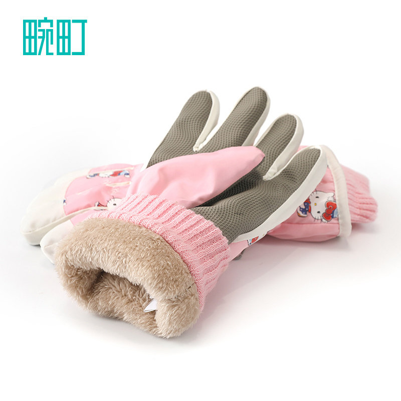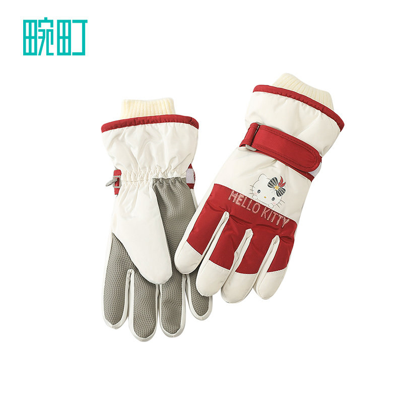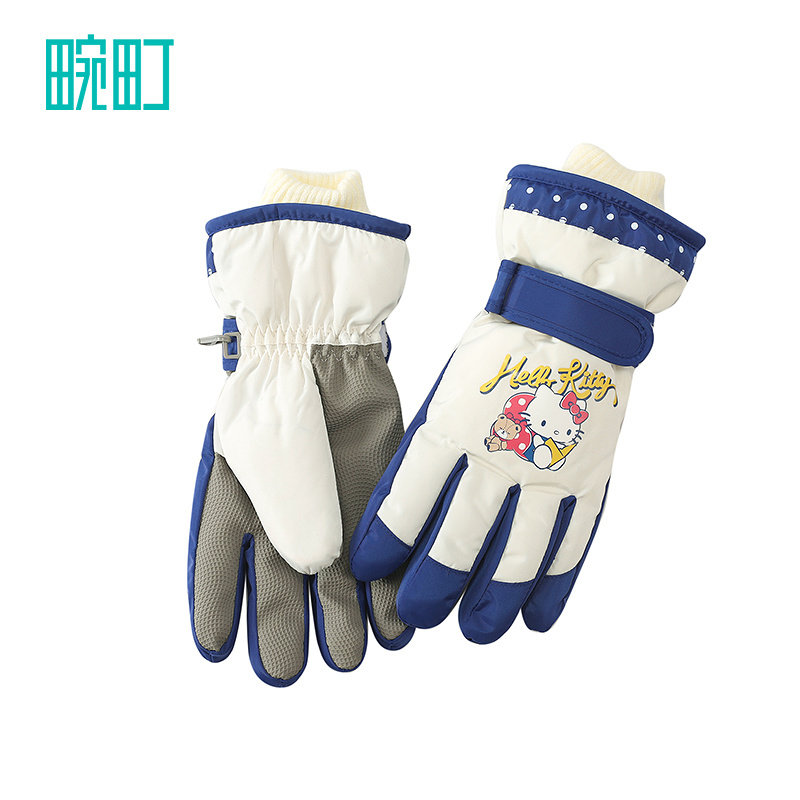 📚 畹町儿童手套女孩秋冬加绒加厚防寒户外大童hellokitty猫滑雪手套