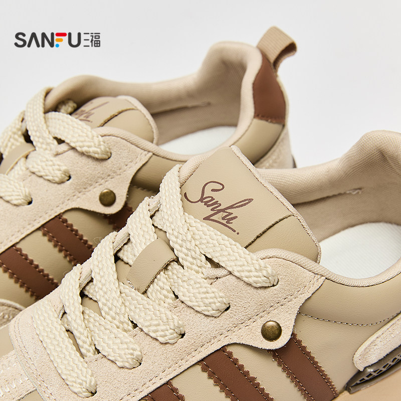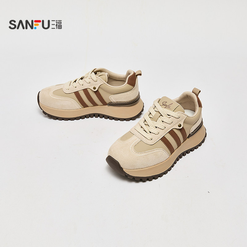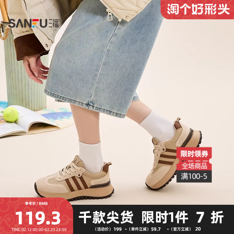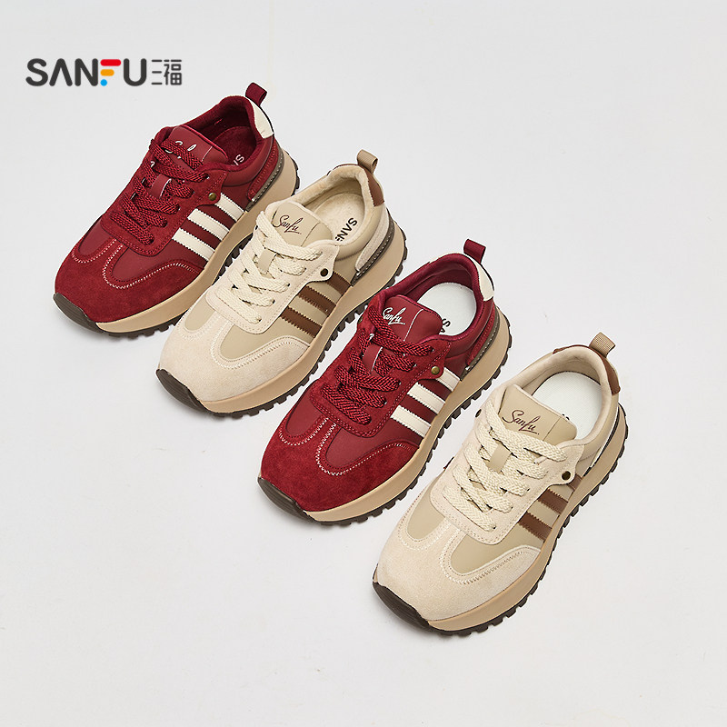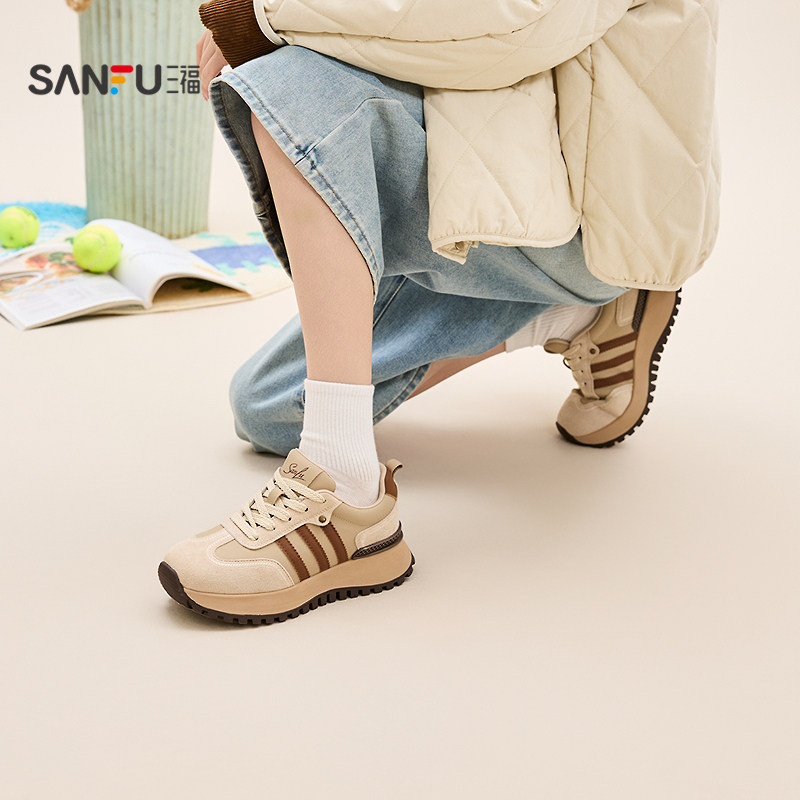 📚 三福鞋子女运动鞋冬季千禧复古撞色圆头增高厚底慢跑鞋女鞋848578