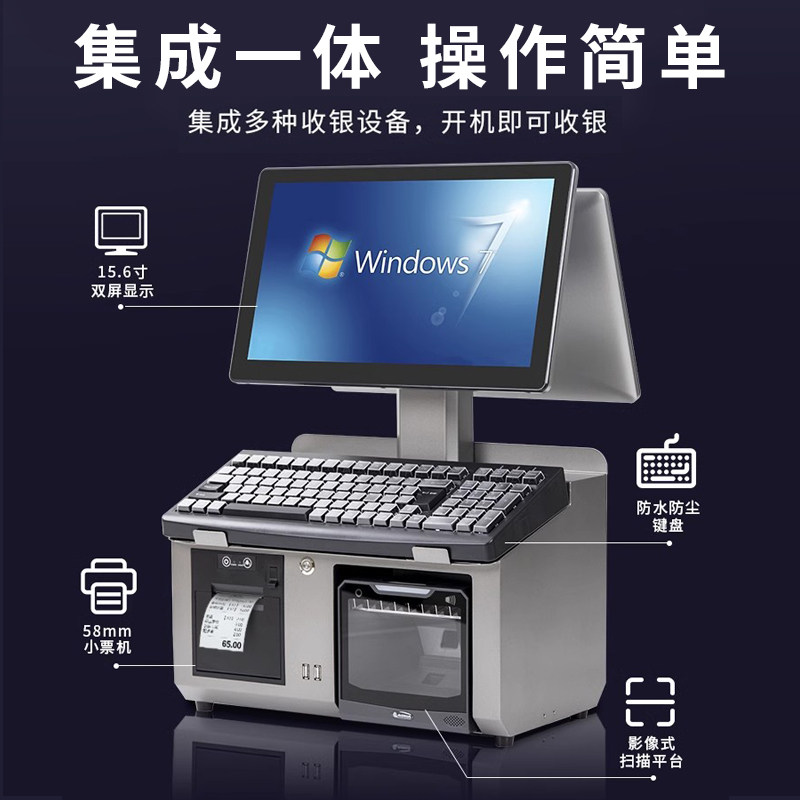 📚 大超市专用通道式收银机一体机奥家零售商超连锁卖场Windows收银台电脑扫码智能双屏商用收银管理系统收款机