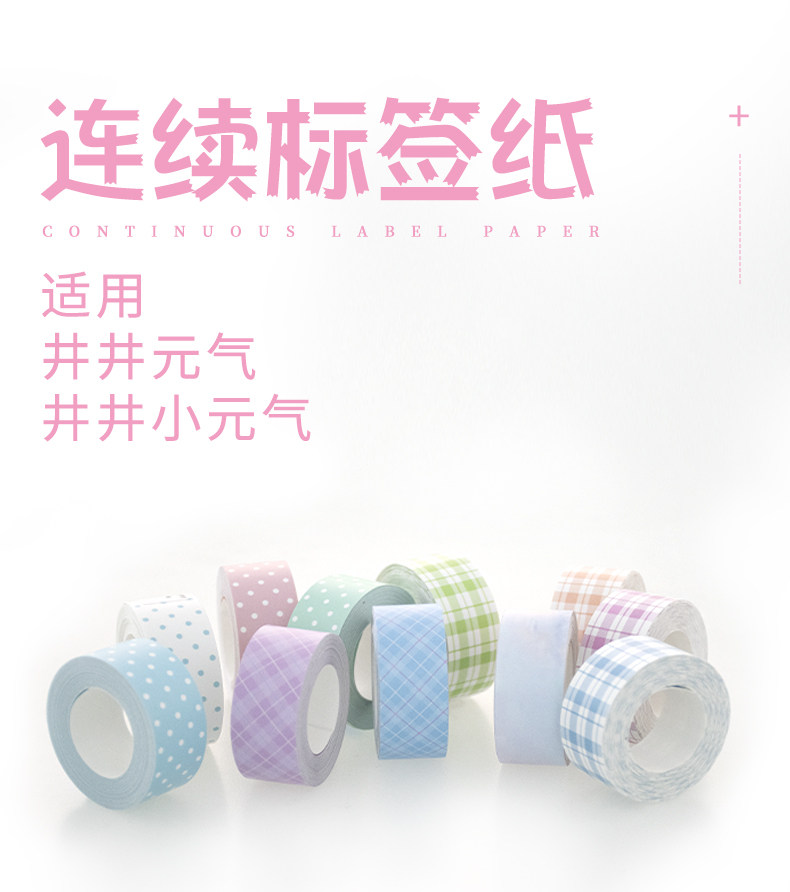 📚 适用井井标签机Mini元气系列防水易撕纯色便签纸12mm16mm间隙连续纸不干胶贴纸家庭手账收纳超市商品价热敏纸