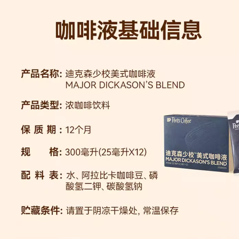 📚 Peets皮爷迪克森少校美式咖啡液25ml*36条口感平衡900ml