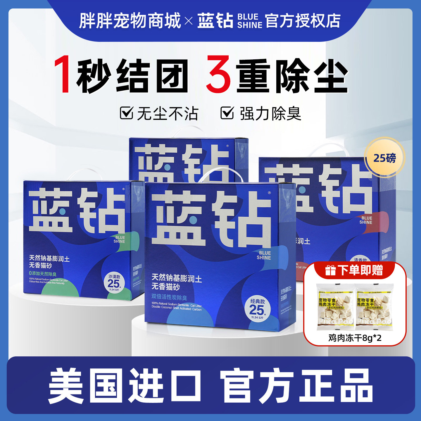 📚 蓝钻猫砂美国进口膨润土25磅活性炭香型猫砂抗菌除臭无尘大袋猫沙