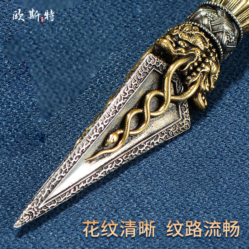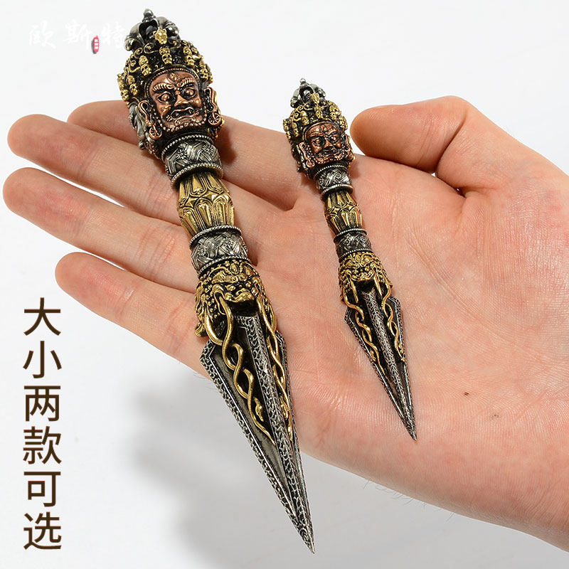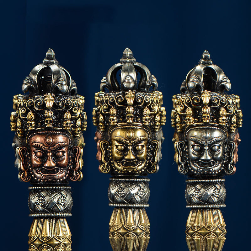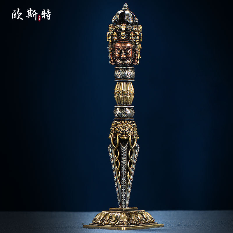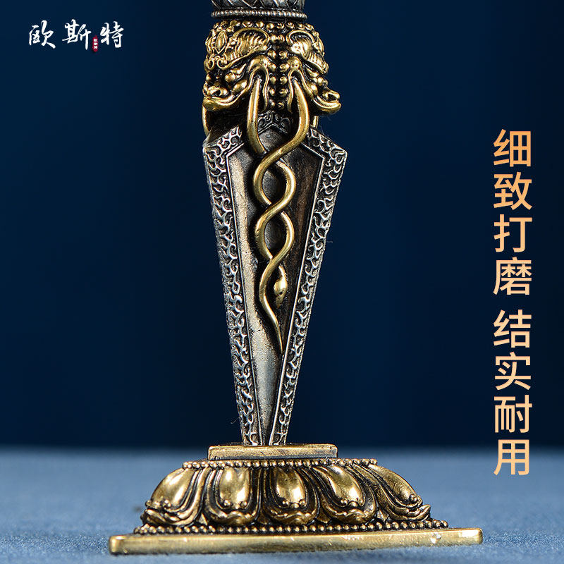📚 欧斯特 手工艺品三面普巴橛 仿古做旧铜鎏银家居客厅装饰品摆件