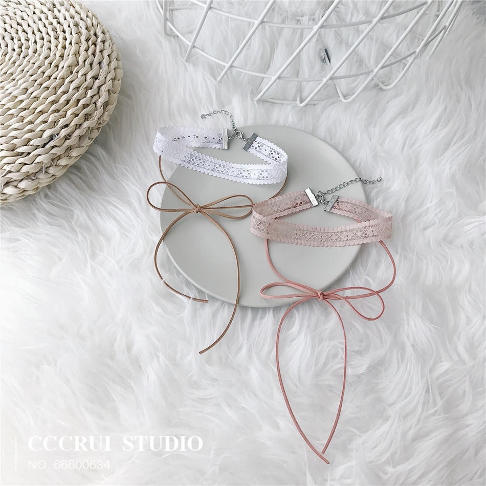 📚 CCCRUI 日韩国choker双层甜美蕾丝系带蝴蝶结项圈颈链锁骨项链女