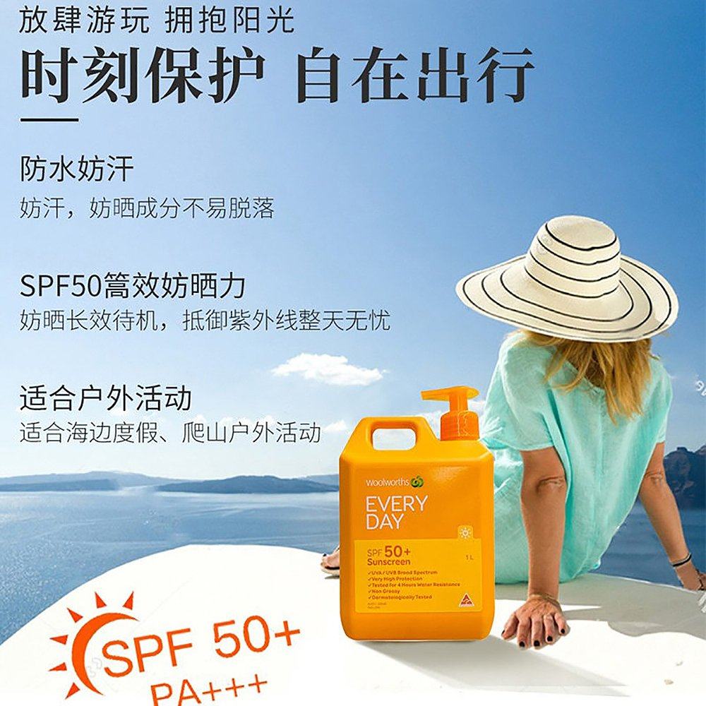 📚 澳大利亚直邮Woolworths防晒霜水杨酸轻薄SPF50+防紫外线正品1L