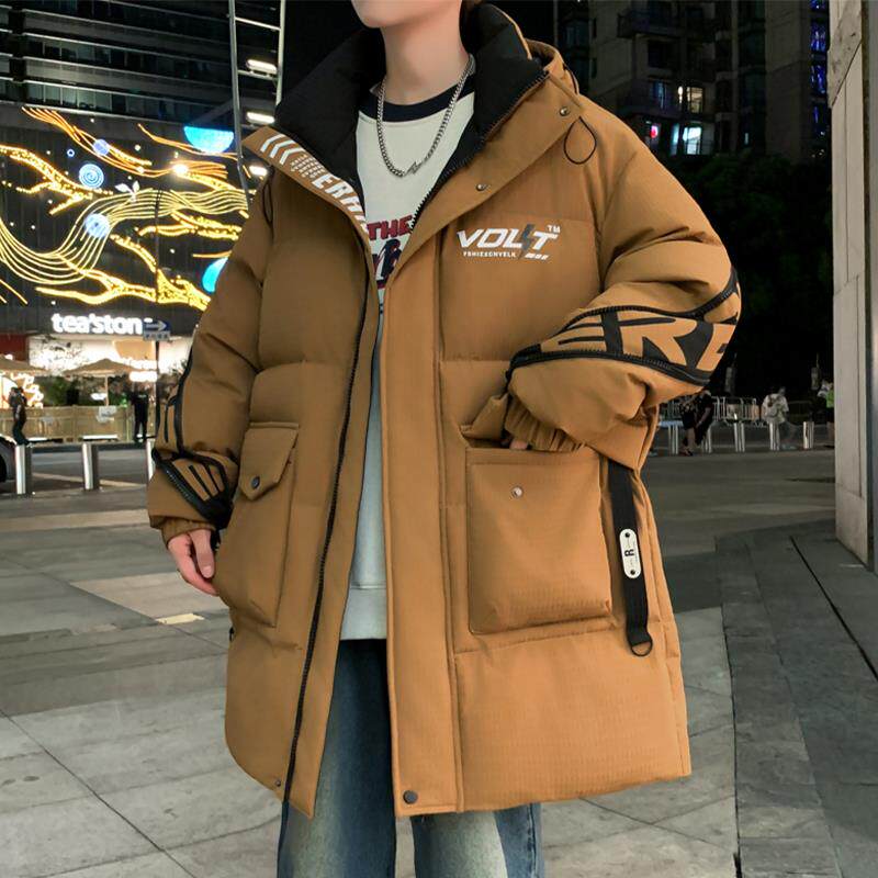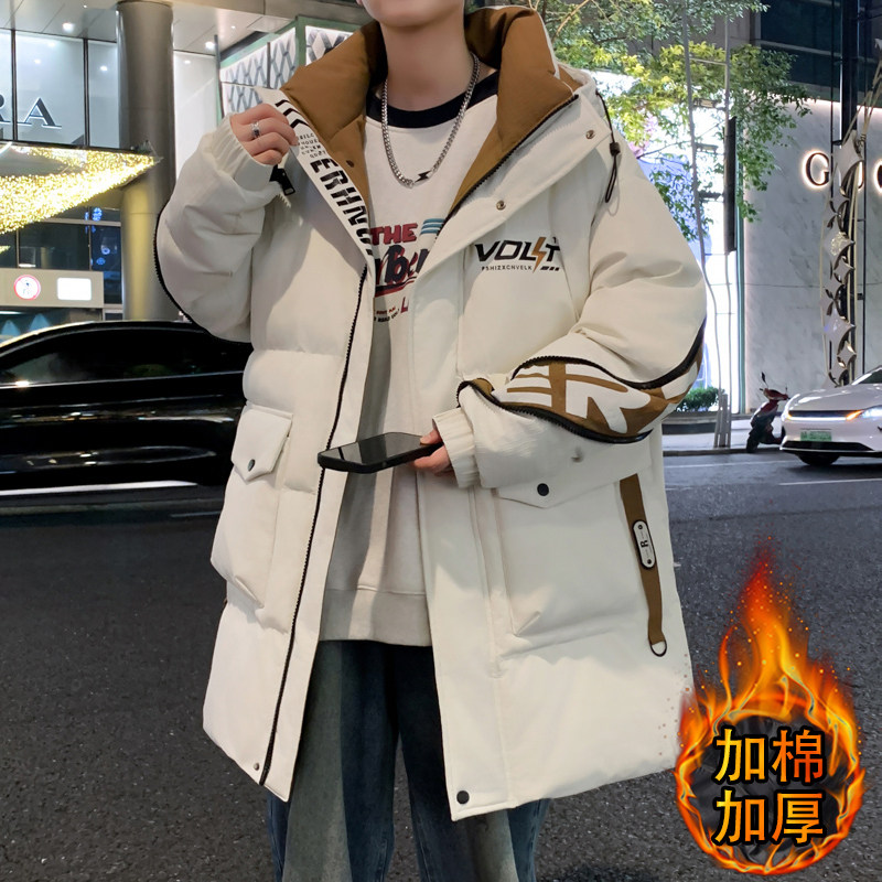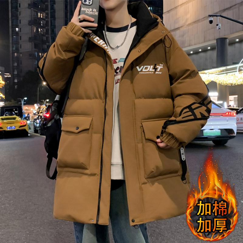 📚 中长款棉服男生冬季加棉加厚棉衣外套连帽男装士保暖防寒棉袄大衣