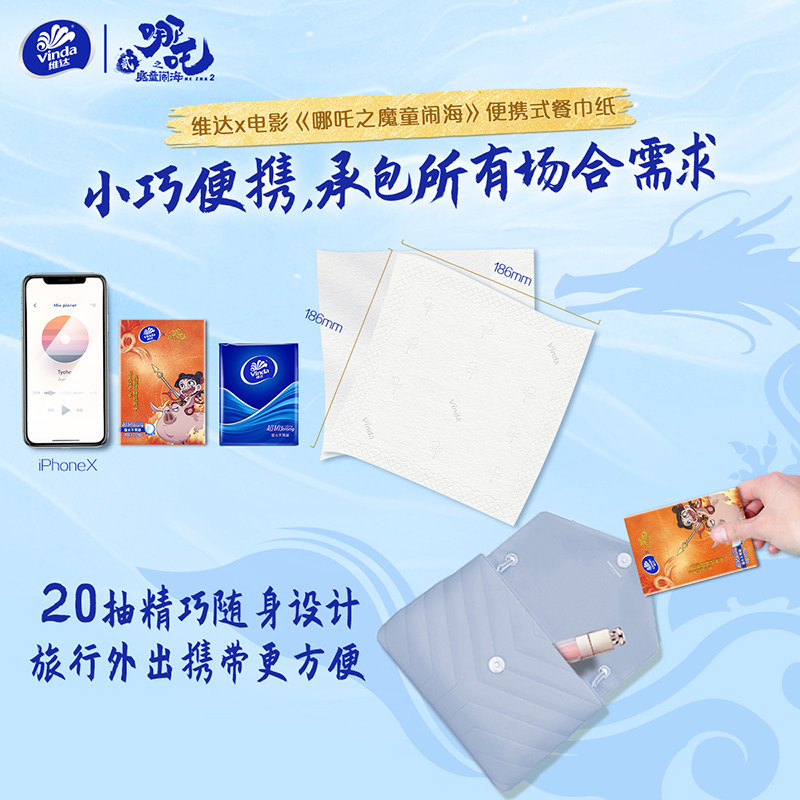 📚 维达哪吒联名抽纸4层20抽超韧便携式餐巾纸手帕纸家用新年旅行装