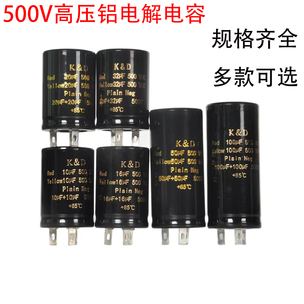 📚 500V高压电解质电容器10UF/16UF/20UF/32UF/50UF/100+100UF+85°C