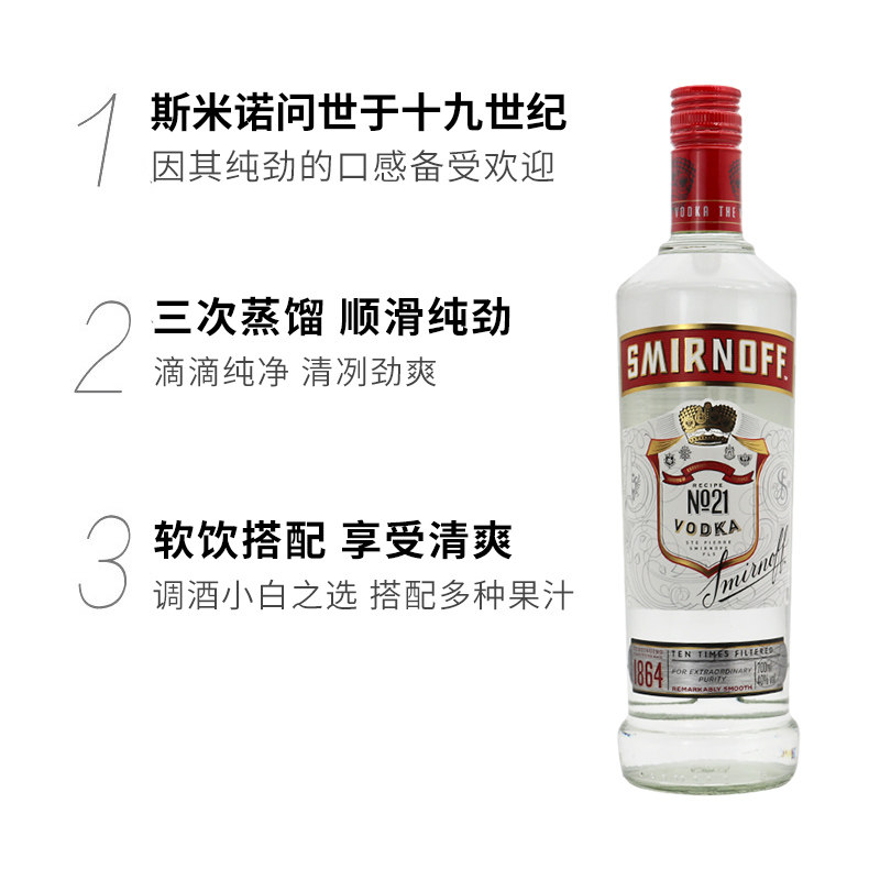 📚 斯米诺750ml俄罗斯红牌伏特加小鸟鸡尾酒调酒基酒进口洋酒烈酒