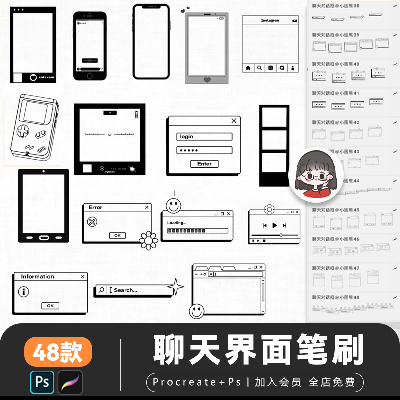 📚 procreate笔刷手机边框聊天界面对话框电脑窗口屏幕页面ps笔刷