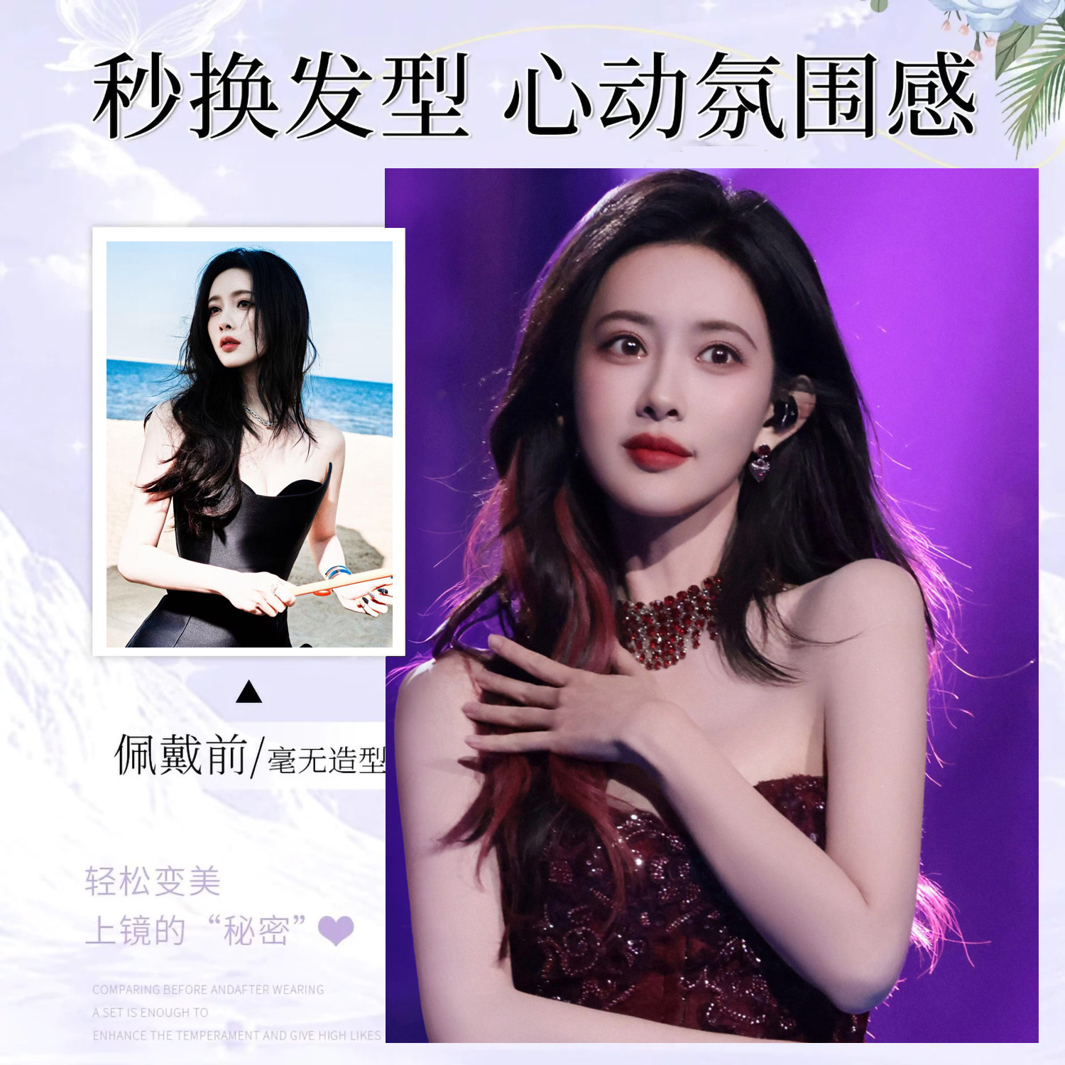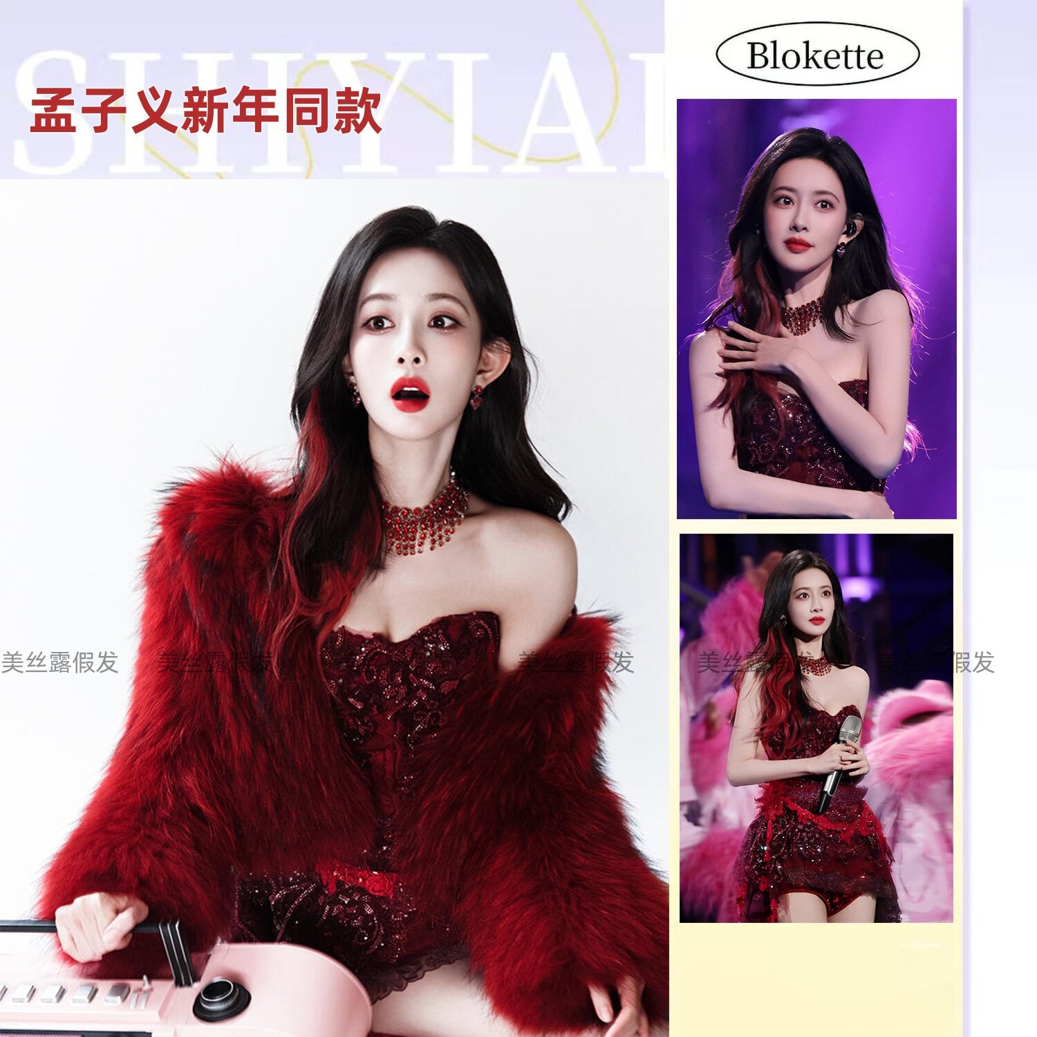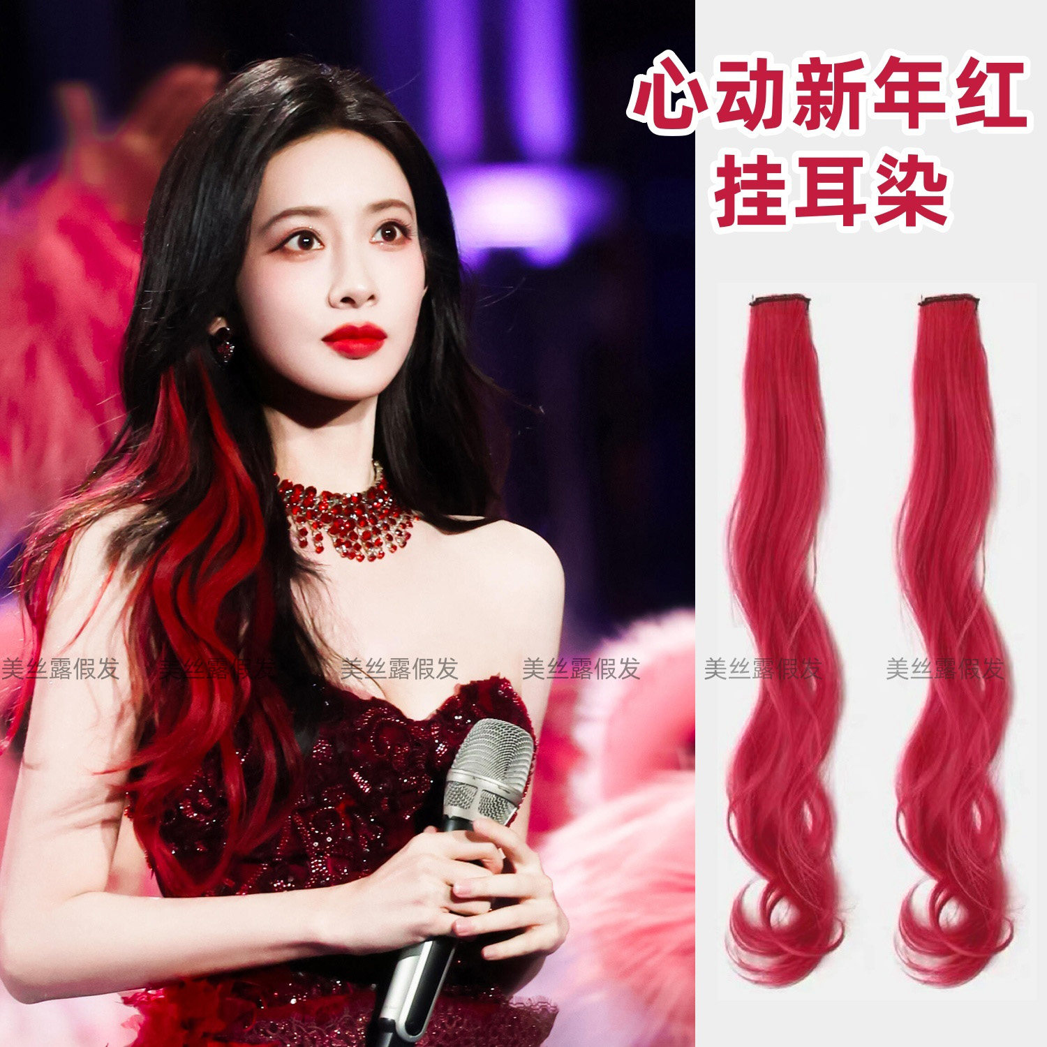📚 孟子义同款新年红色挂耳染发片女一片式挑染假发片彩色演唱会发饰