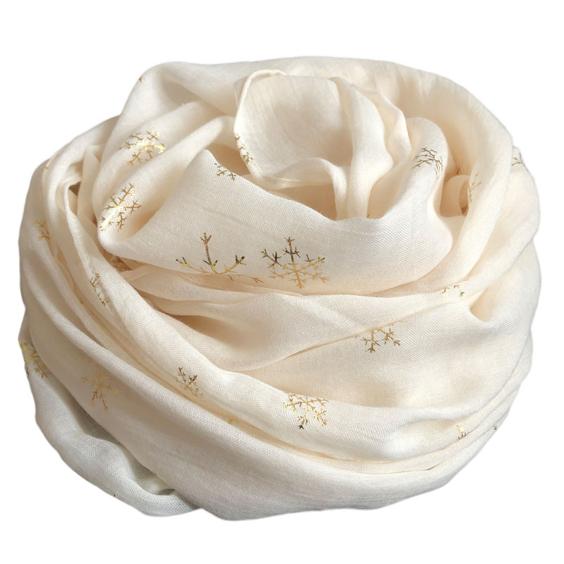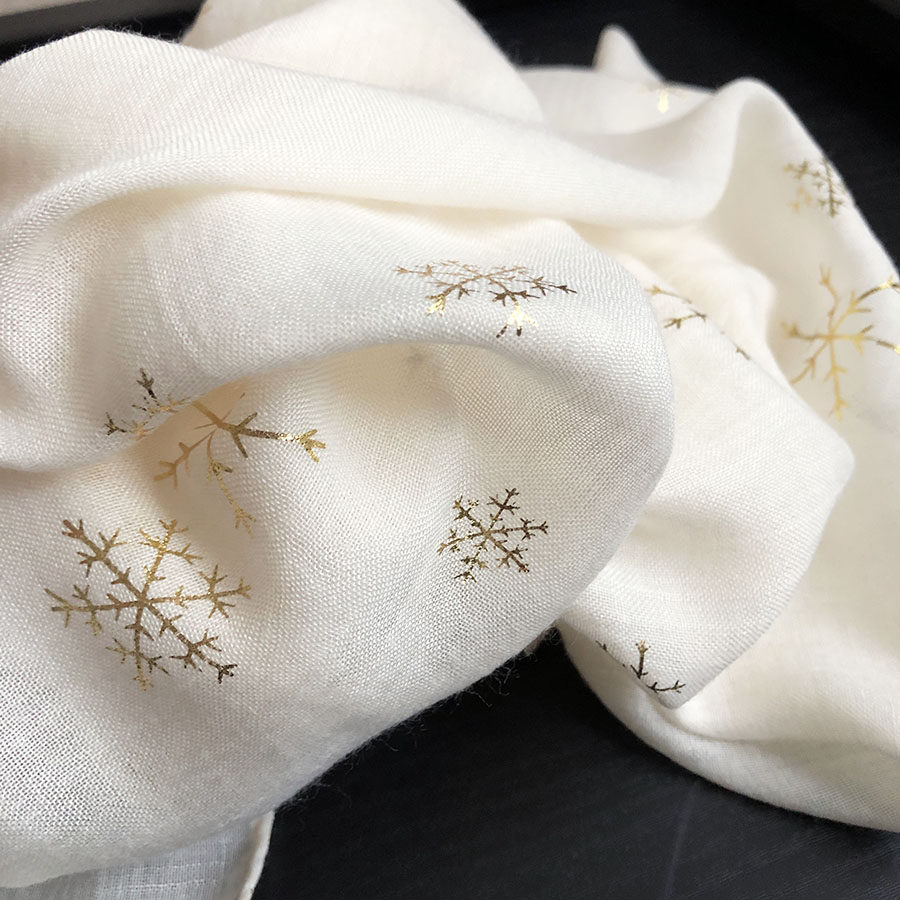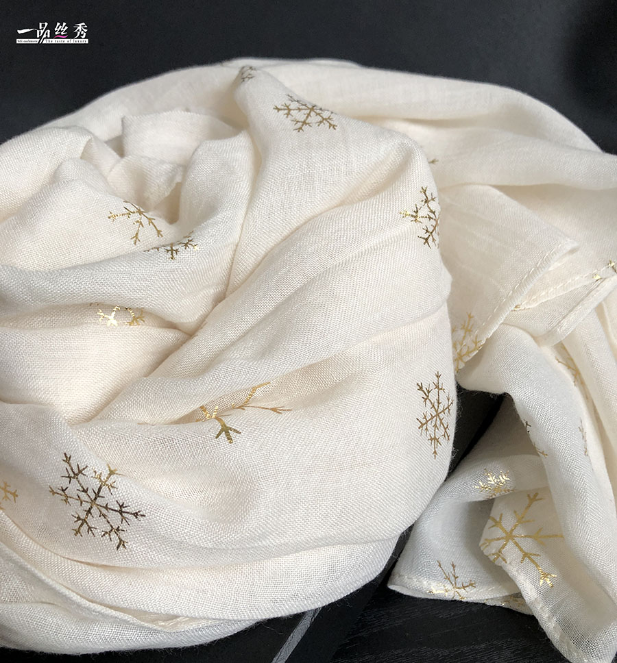 📚 围巾女冬季韩版百搭可爱少女烫金雪花保暖围脖春秋季长款米色丝巾