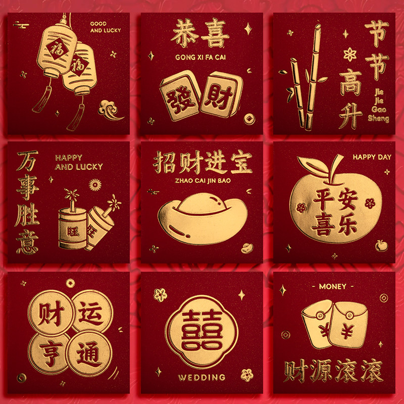 📚 财运亨通小红包2026年正方形创意利是封婚礼乔迁酒席回礼通用红包