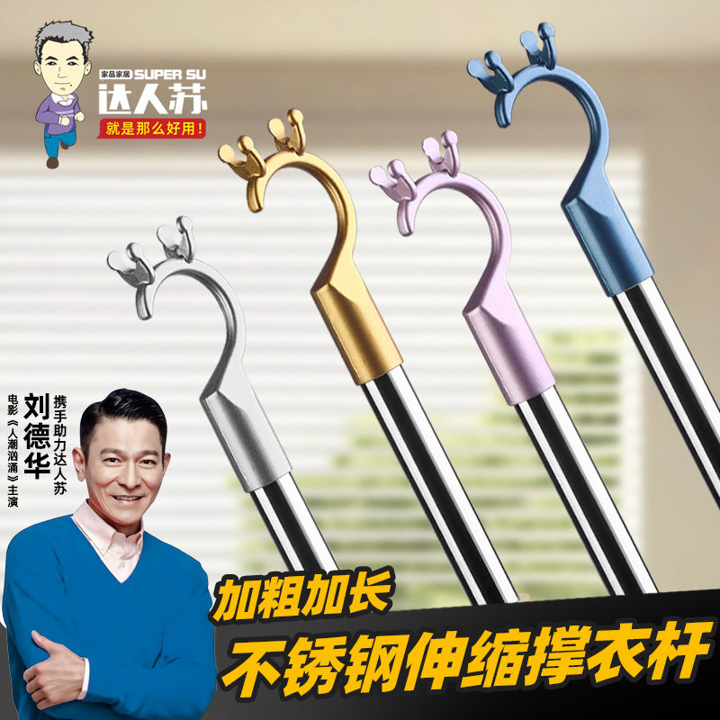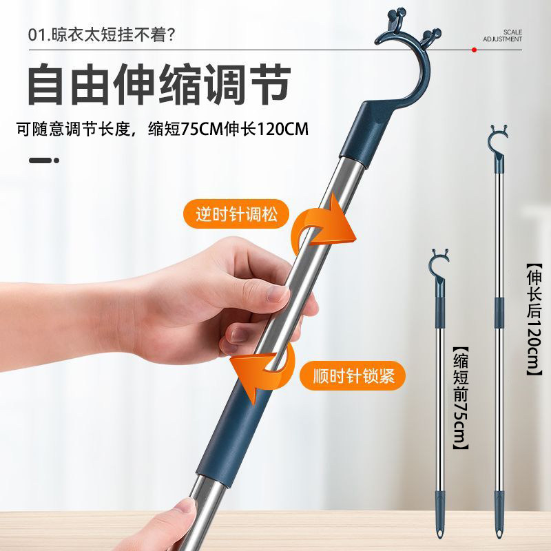 📚 撑衣杆家用可伸缩晾衣杆丫叉不锈钢阳台晒取衣棍挑衣杆子衣叉杆