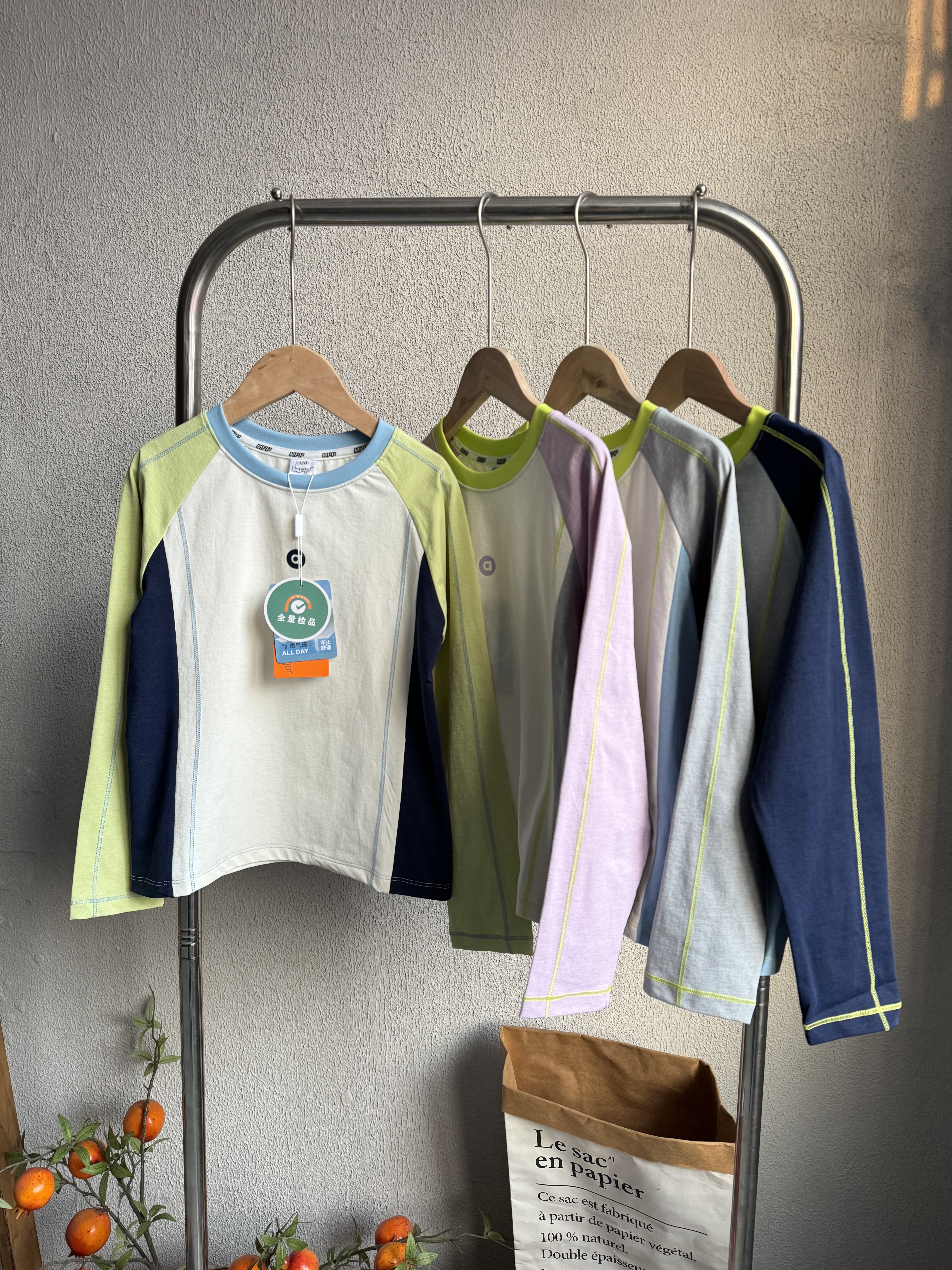 📚 外贸童装儿童拼色插肩速干防晒圆领T恤男女童休闲运动舒适打底衫
