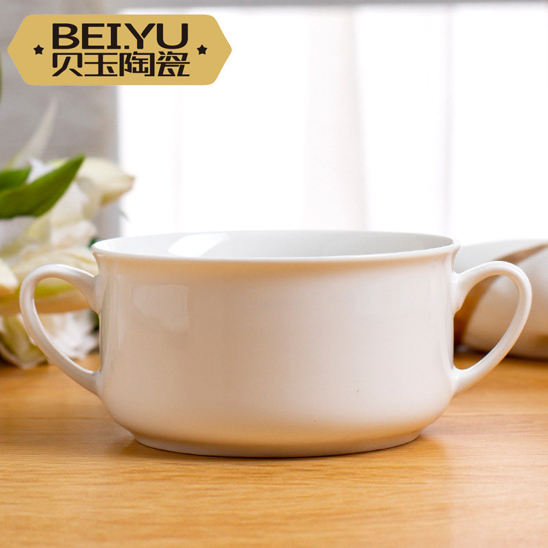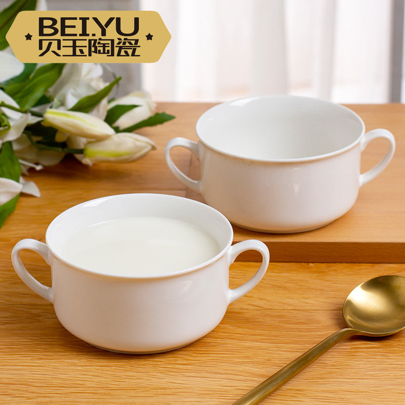 📚 贝玉纯白陶瓷蒸蛋碗家用双耳早餐碗儿童甜品碗骨瓷沙拉碗西餐汤碗