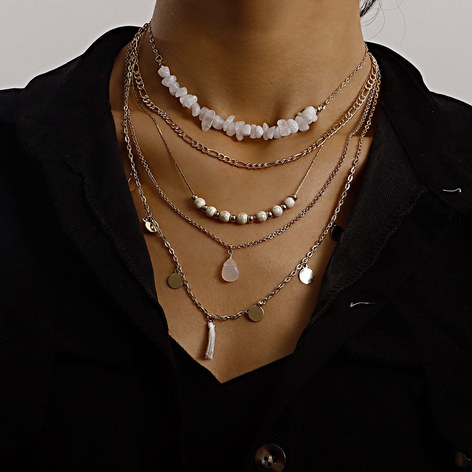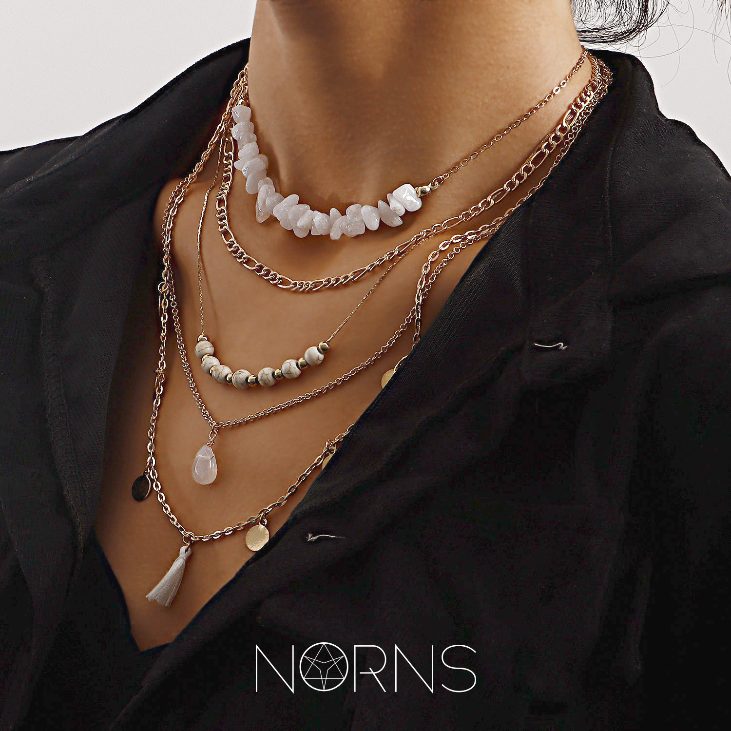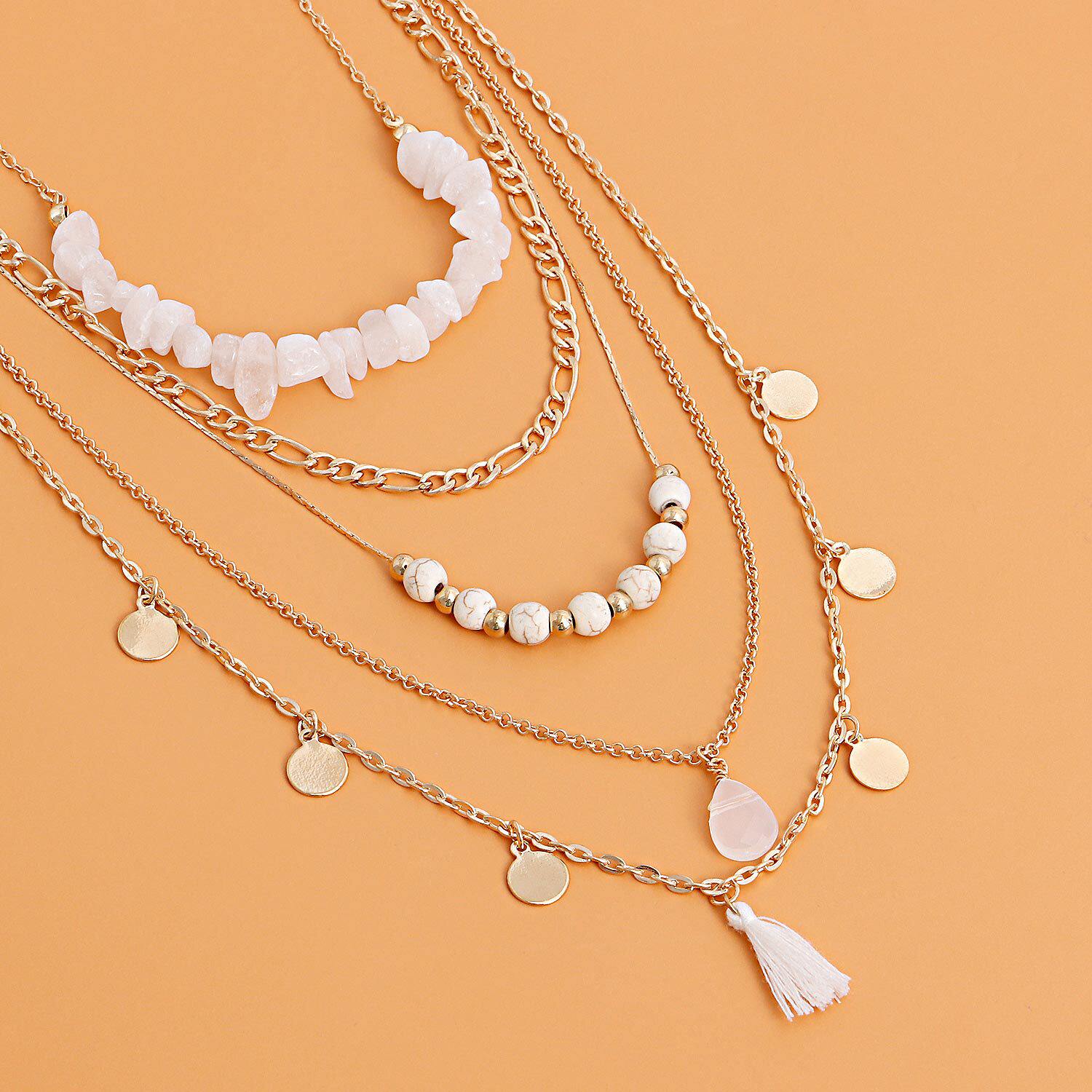 📚 Norns波西米亚牧民混搭天然石流苏多元素圆珠仿水晶多层次项链
