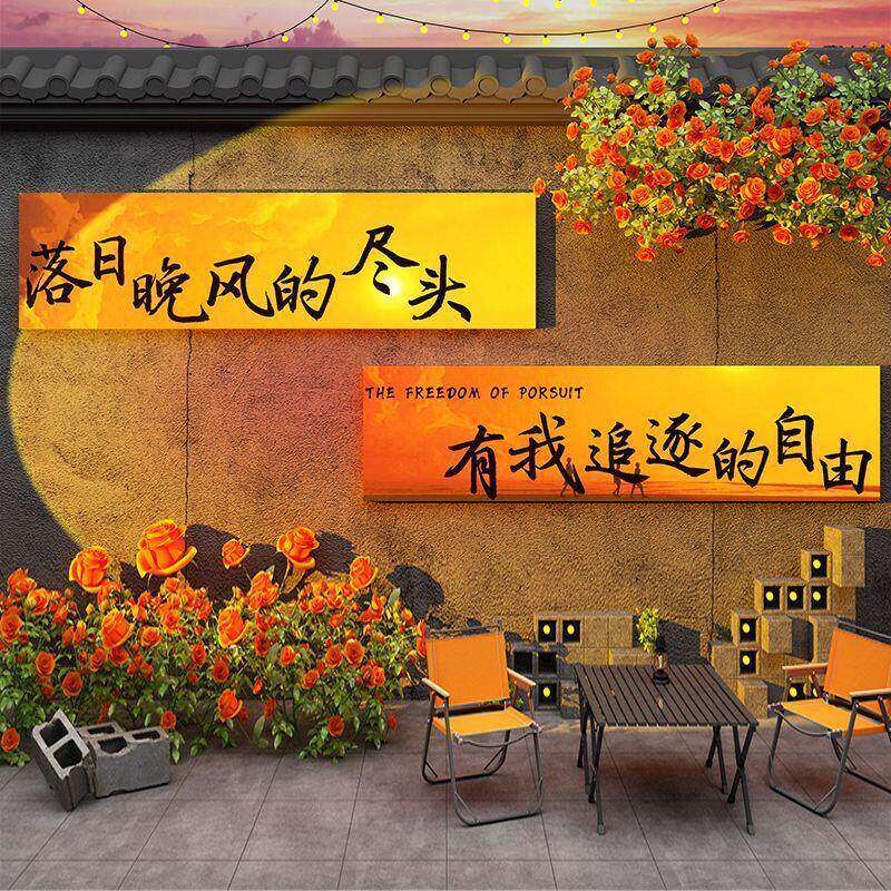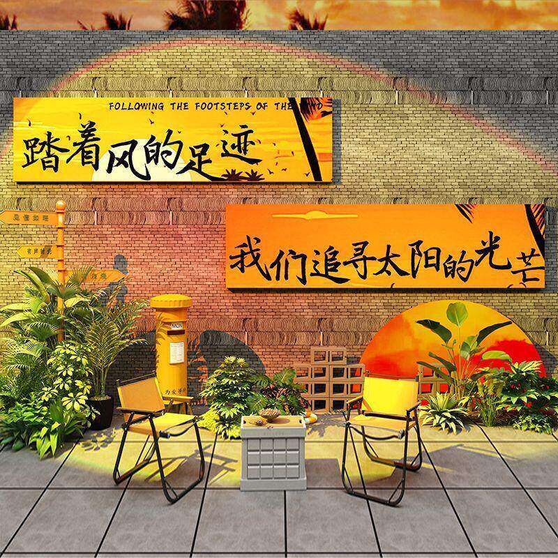📚 网红拍照打卡区露营风奶茶咖啡鲜花店背景墙文化标语装饰氛围贴纸