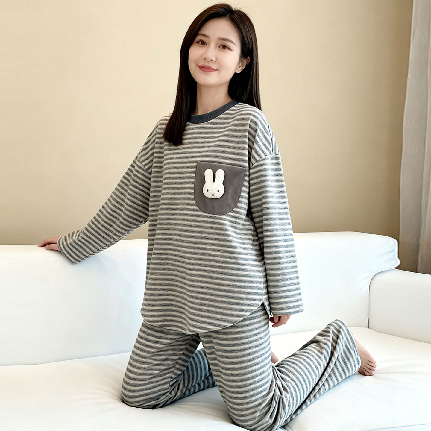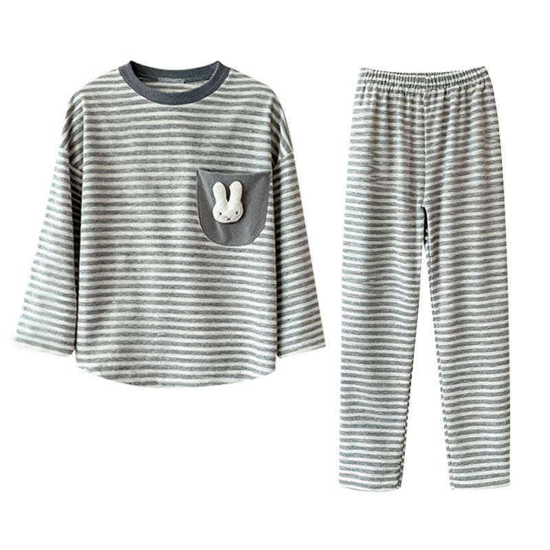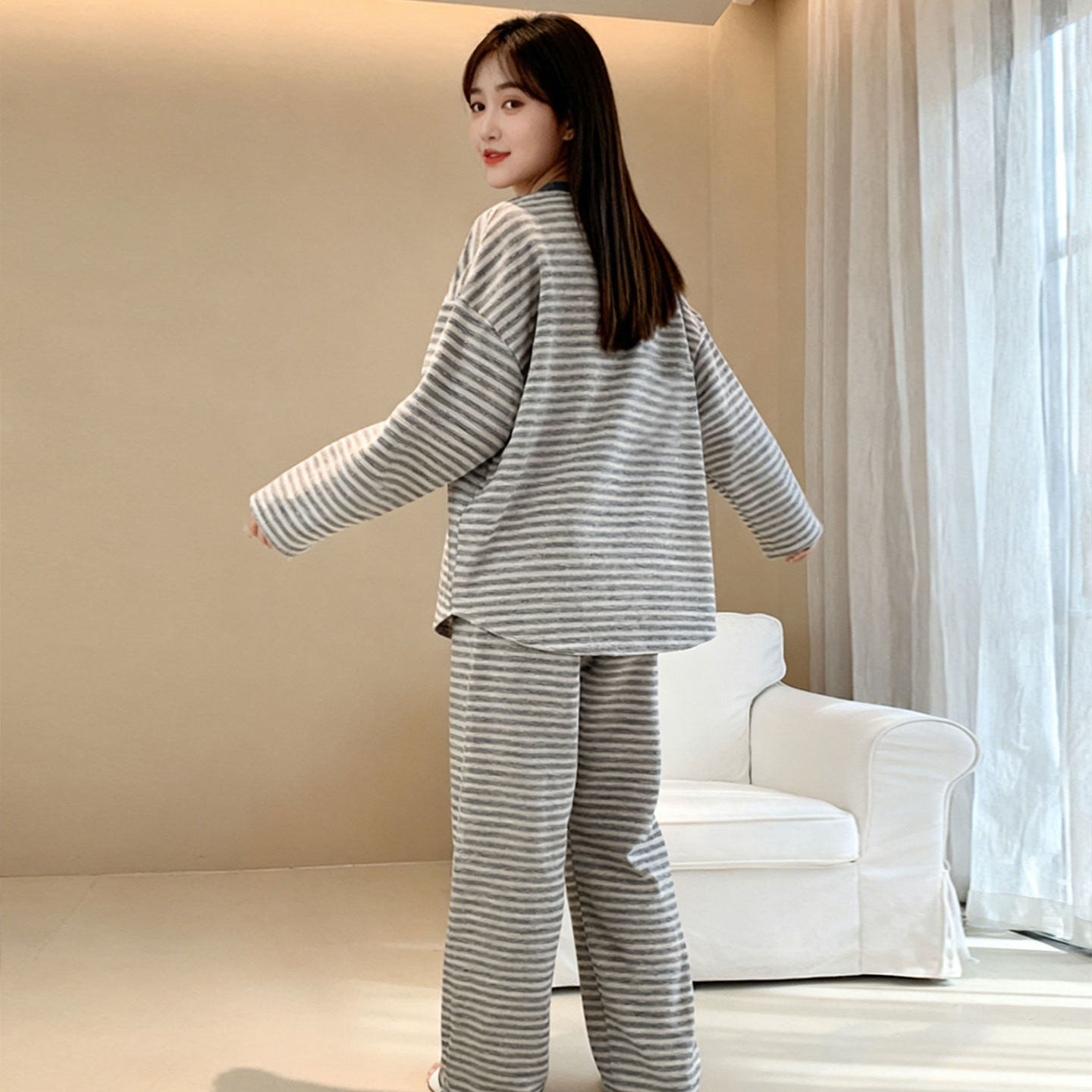 📚 150cm矮小个子女睡衣秋冬薄绒条纹xs小码家居服145矮个子德绒套装