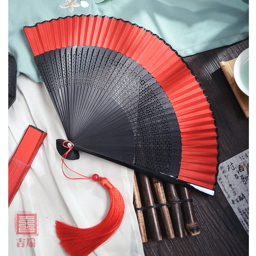 📚 扇子折扇中国风红色舞蹈扇古风汉服旗袍走秀跳舞小竹新中式折叠扇