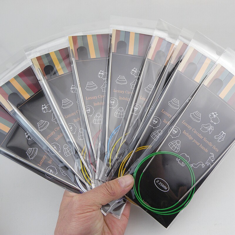 📚 40-120CM外贸彩色绳子毛衣针空心不锈钢环形针棒针(1副针价格)