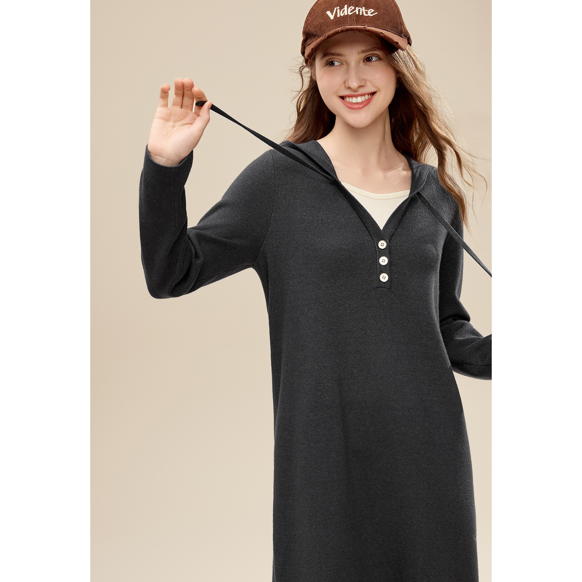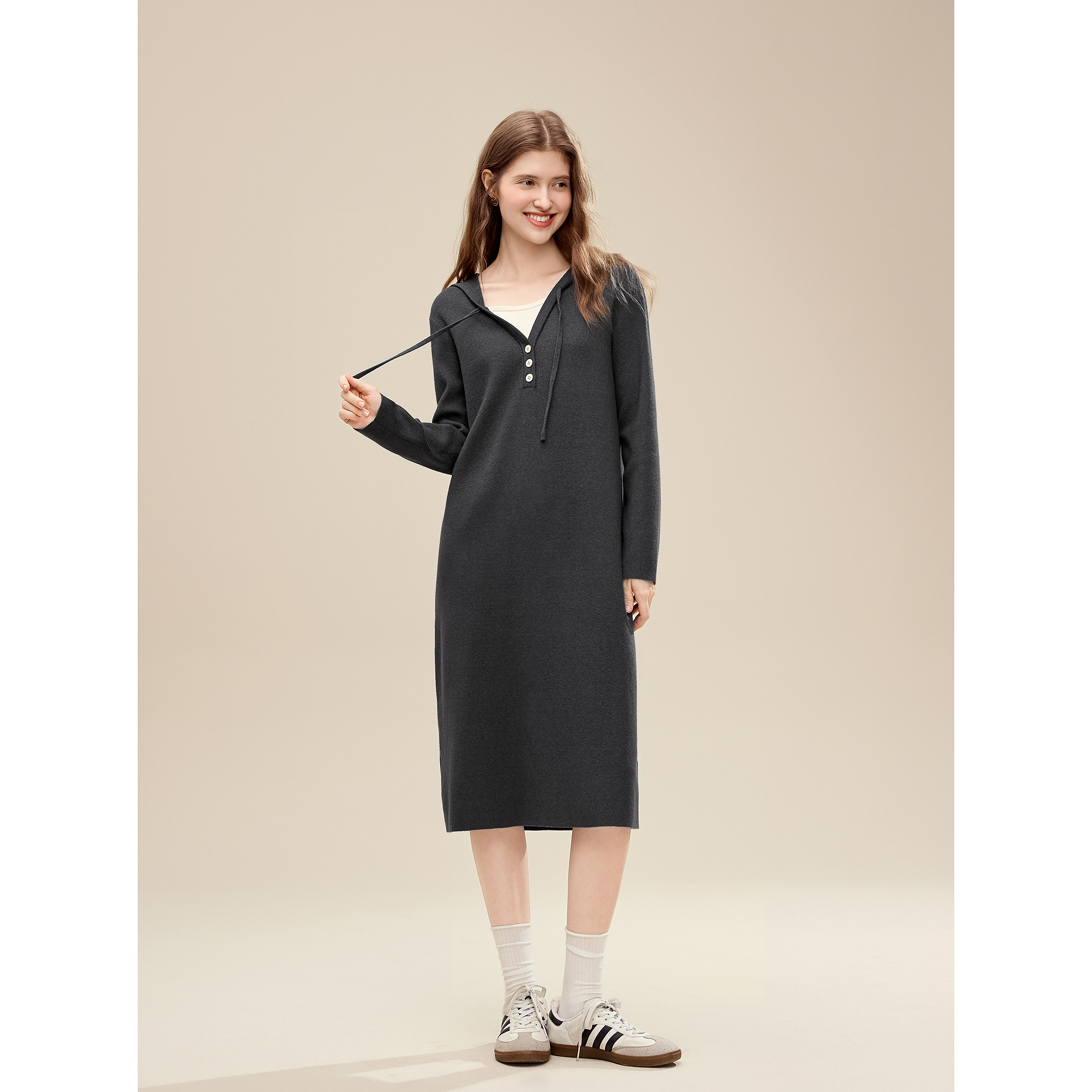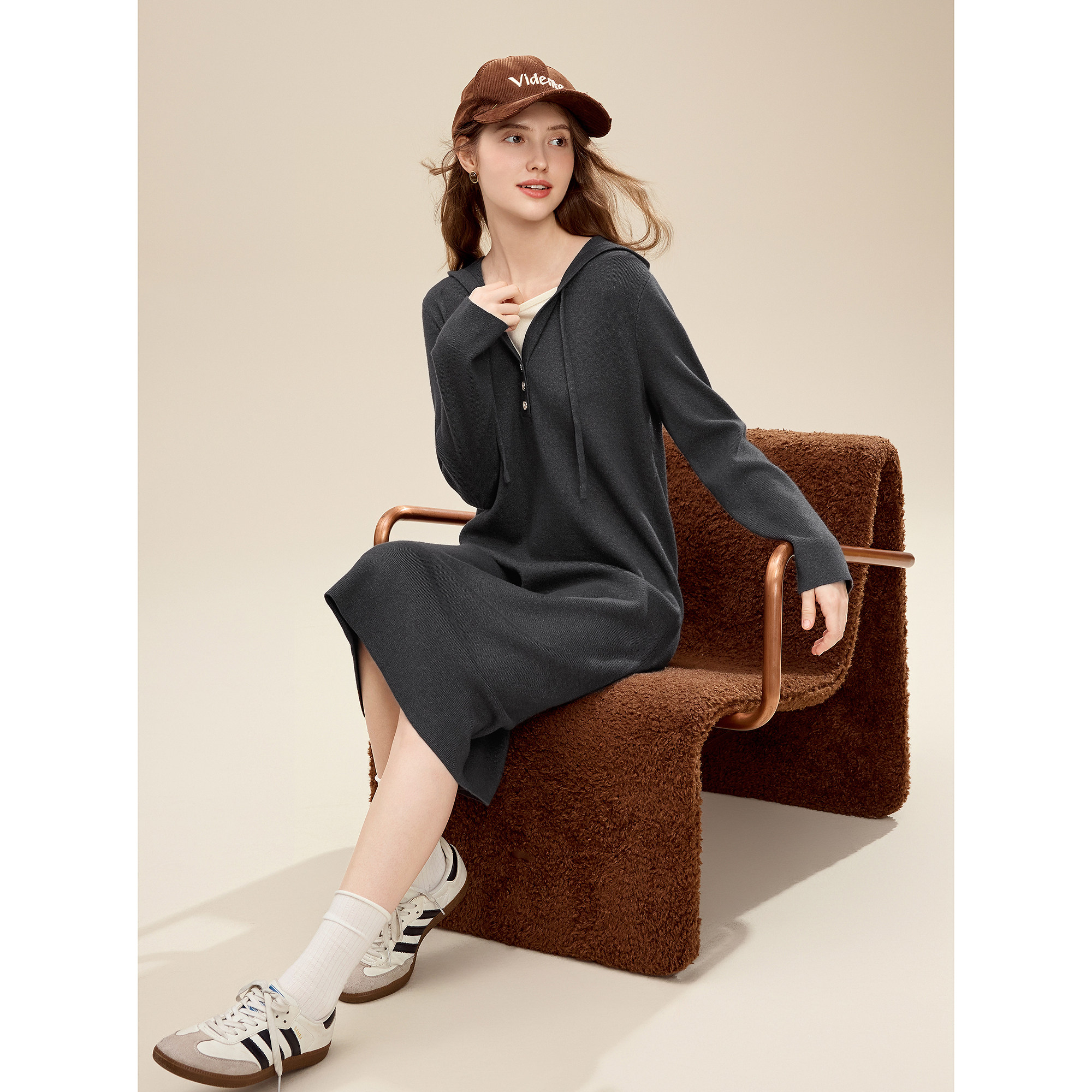 📚 betu百图通勤风假两件连帽针织连衣裙女2025年冬季新款中长裙子