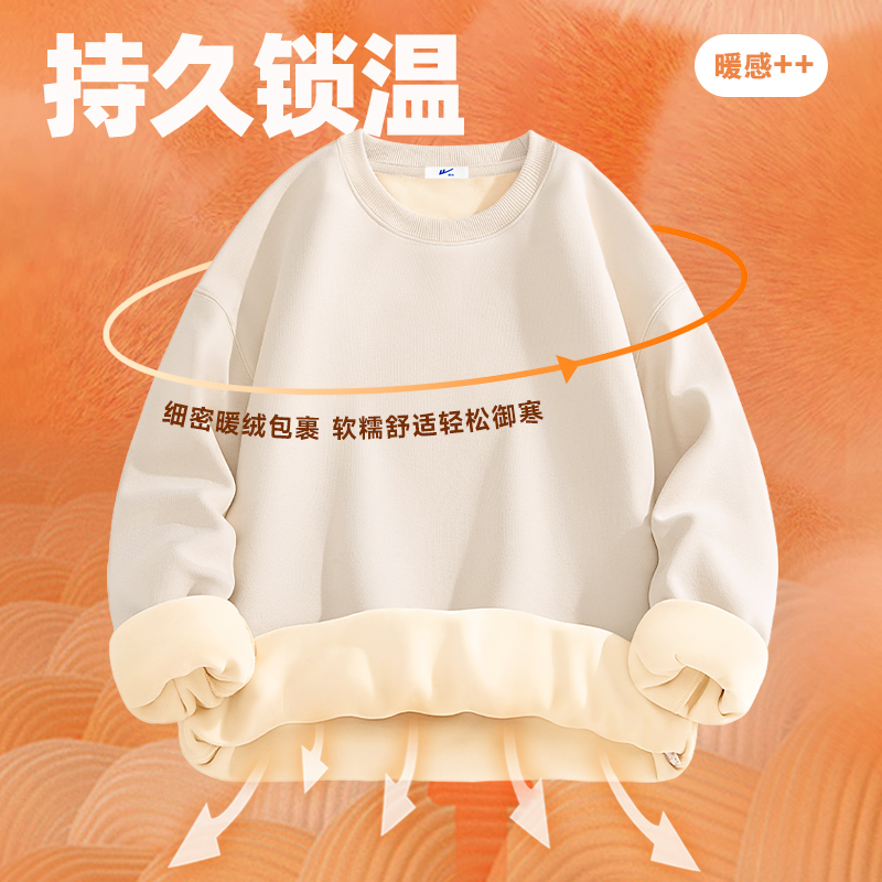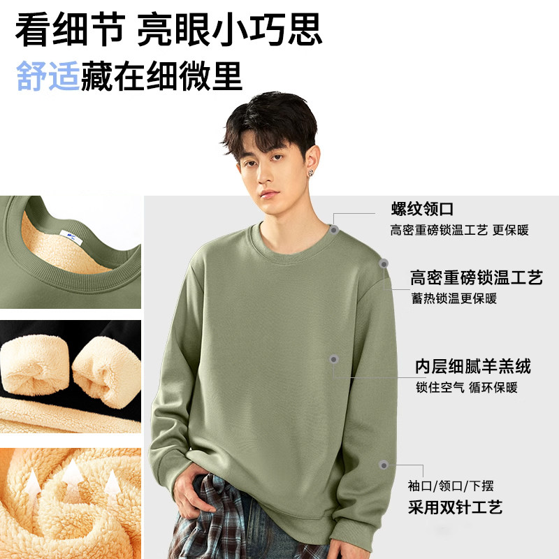 📚 回力圆领卫衣男冬季2025新款正肩重磅男款加绒加厚羊羔绒外套毛Y