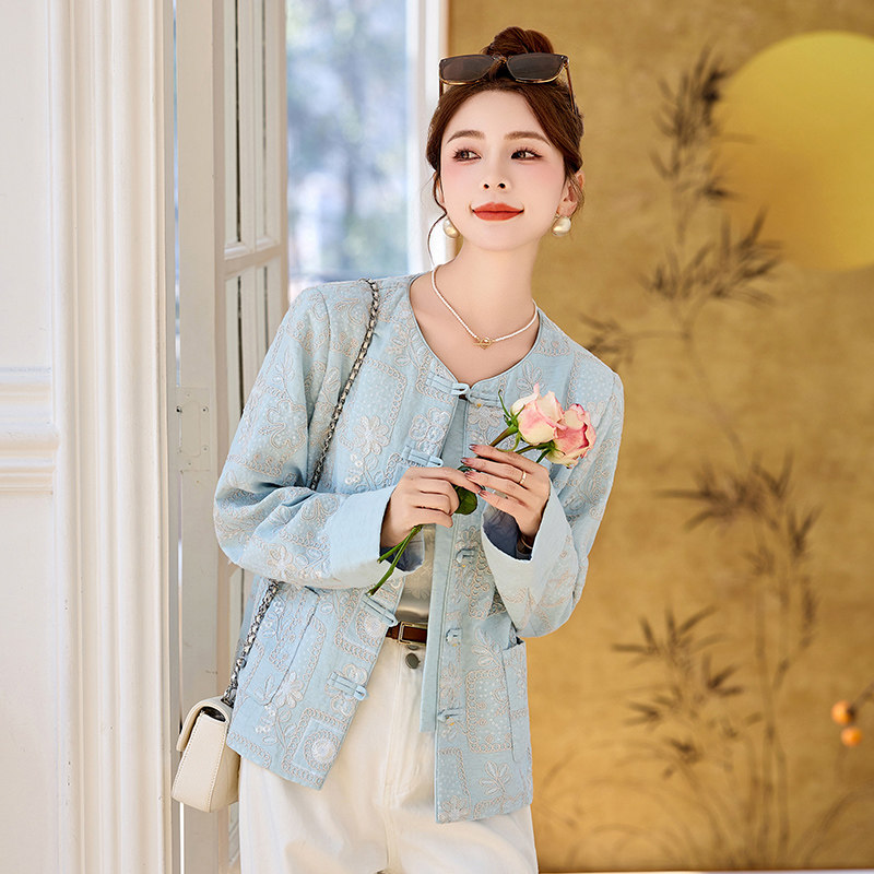 📚 新中式洋气国风外套女春装女款2025年新款小香风盘扣刺绣唐装上衣