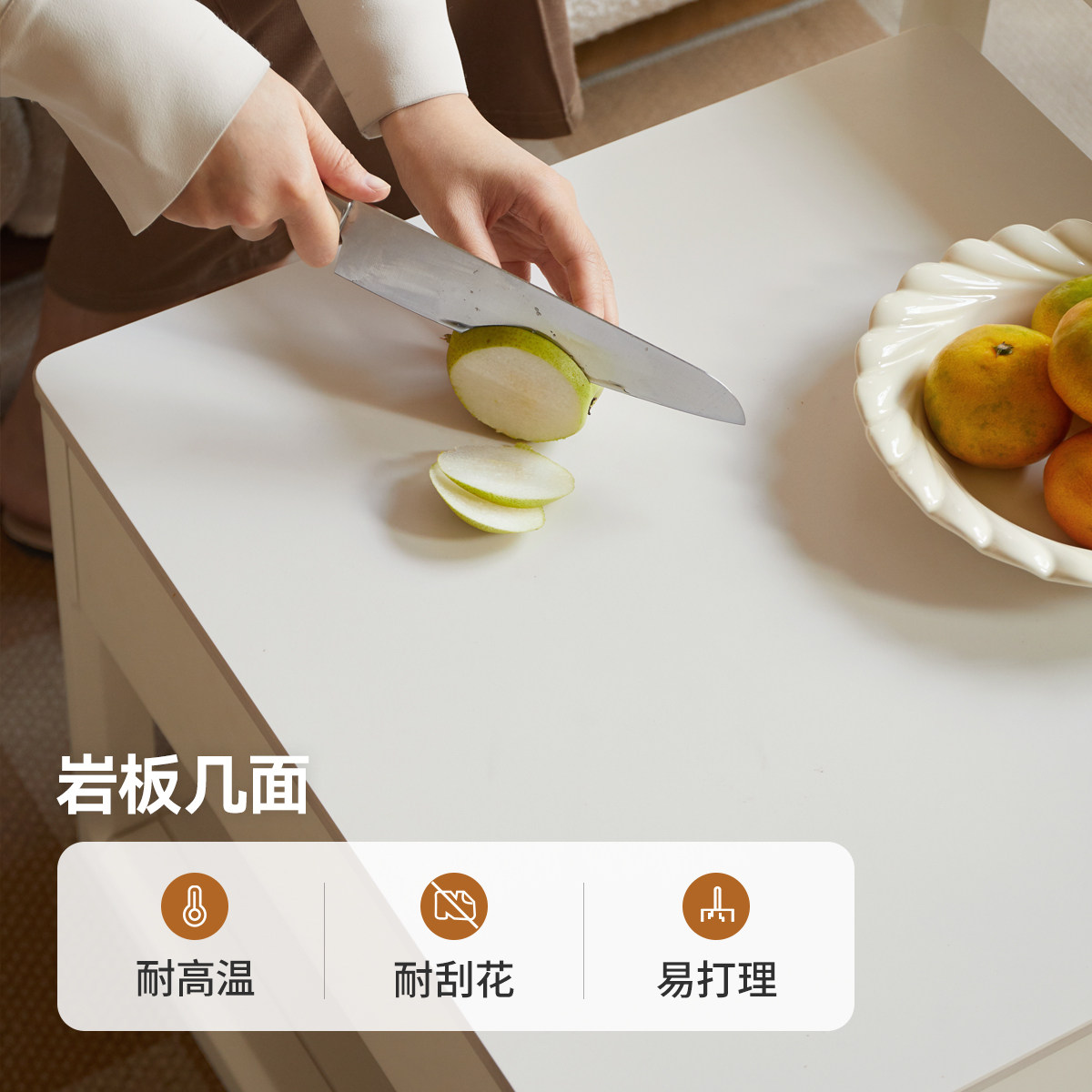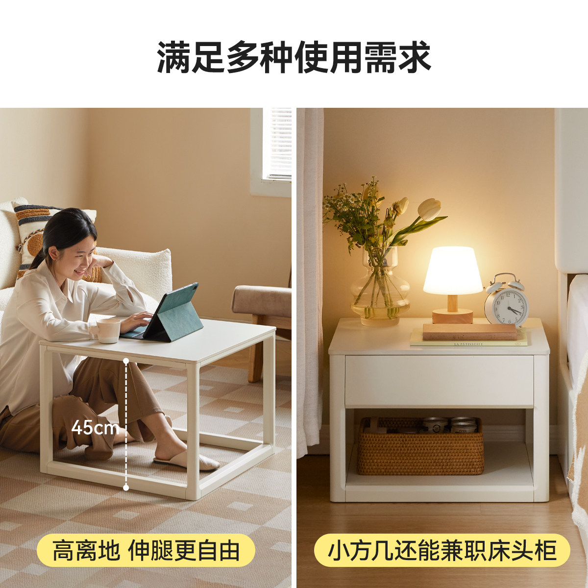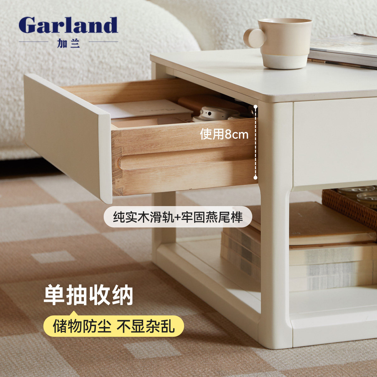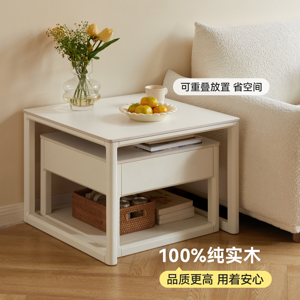 📚 源氏木语加兰实木茶几简约组合茶桌沙发边几白色奶油风岩板茶台