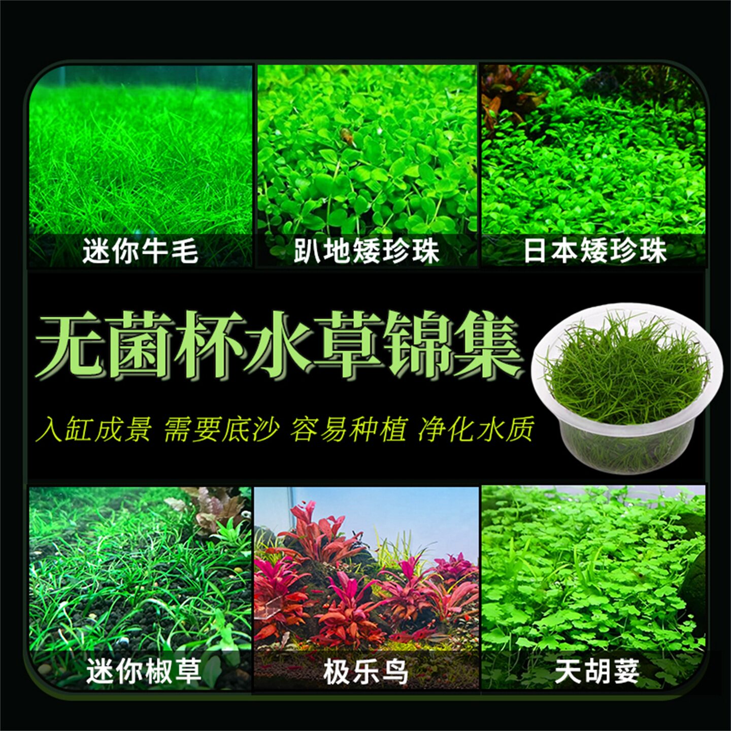 📚 无菌杯水草鱼缸前中后造景珍珠罗贝力绿金钱天湖葵宫廷新手懒人草