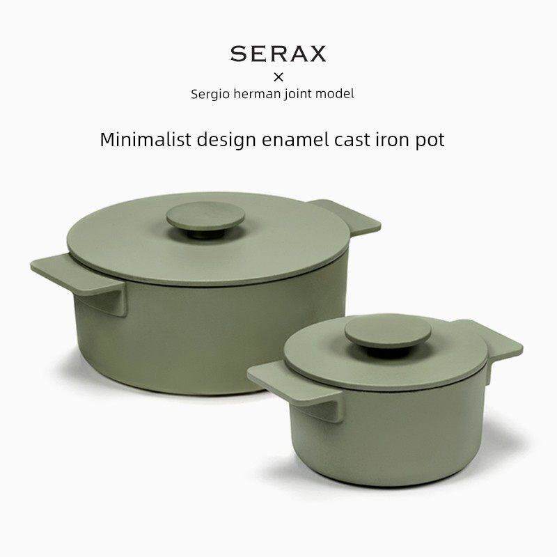 📚 比利时Serax覆古铸铁锅搪瓷锅炖锅家用无涂层平底平底锅条纹煎锅
