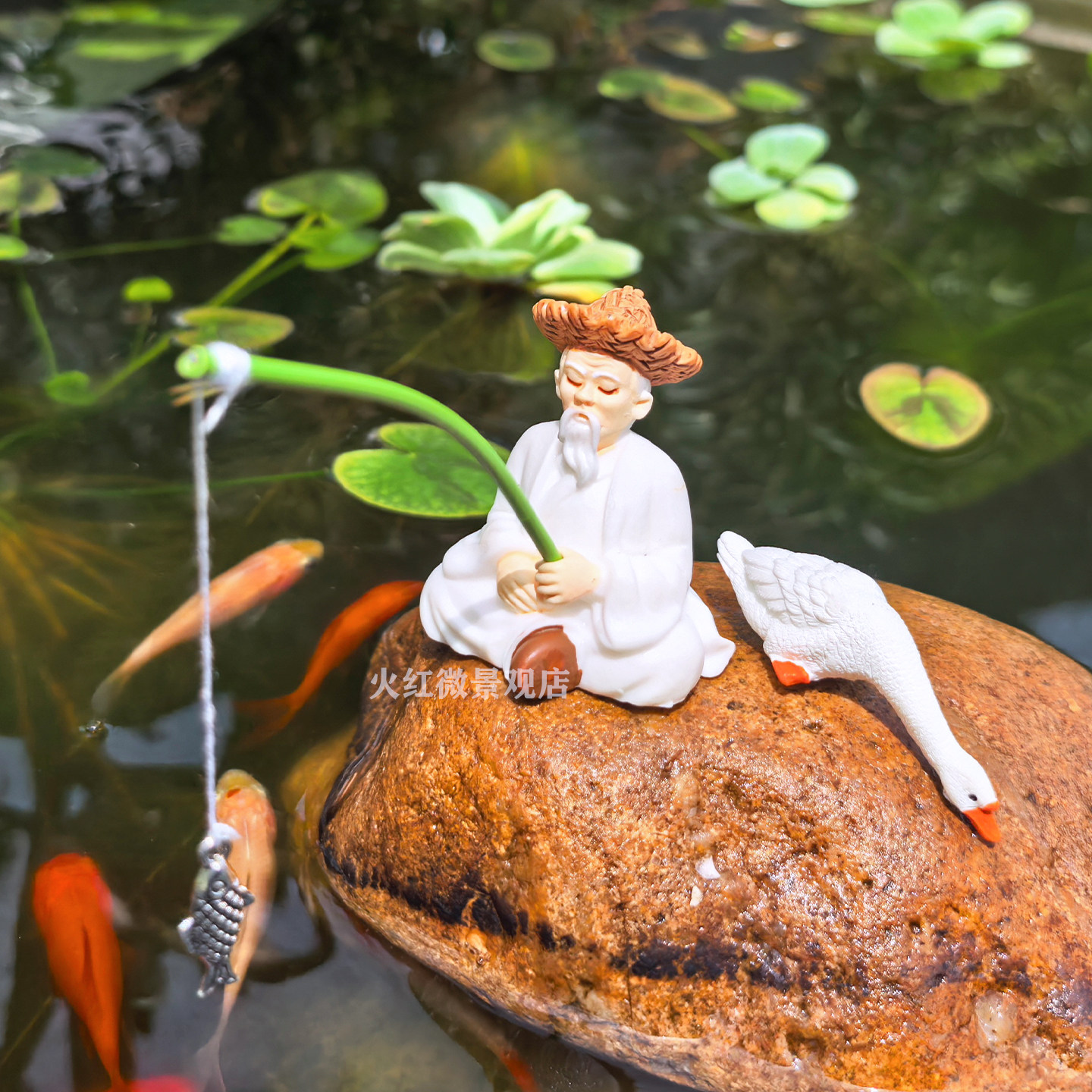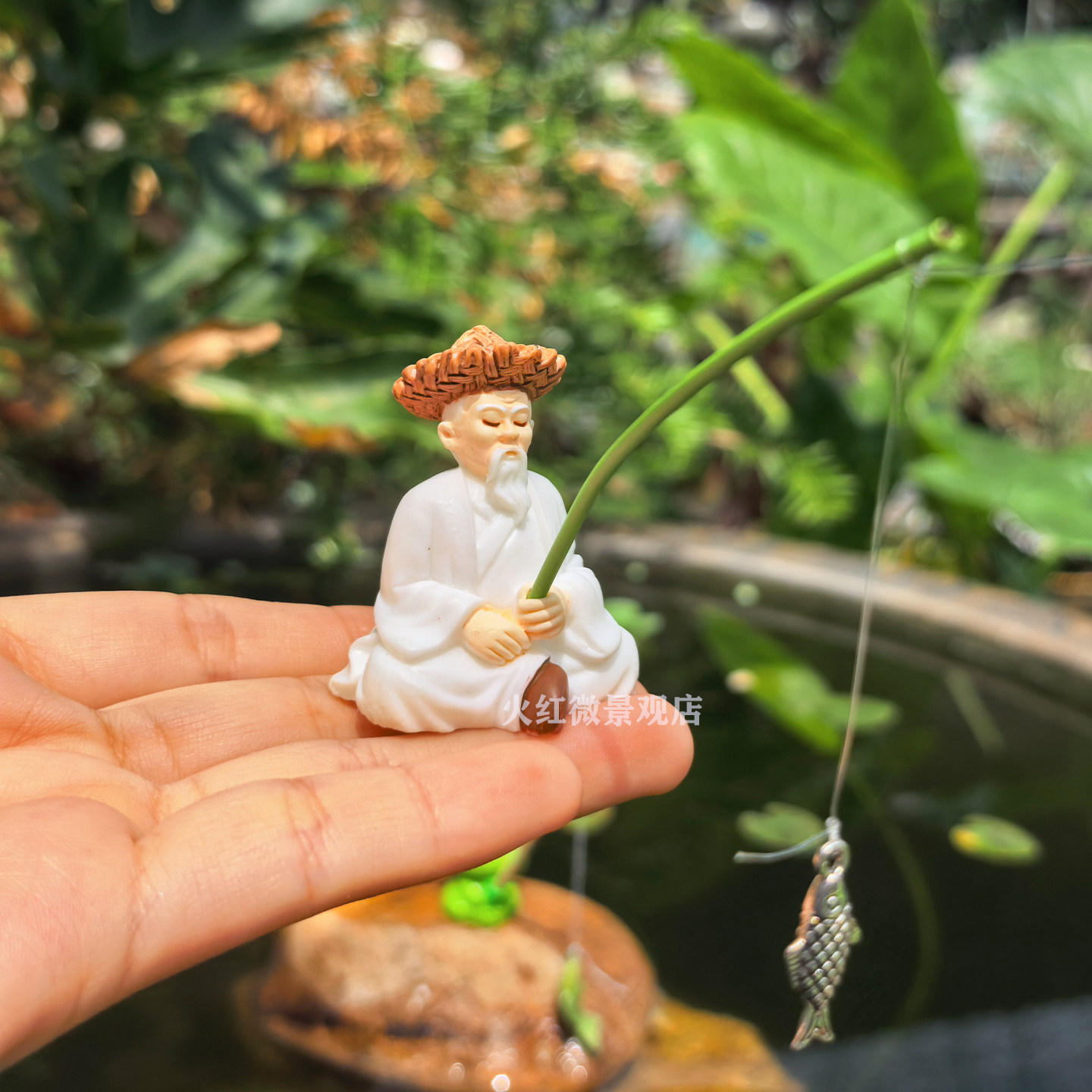 📚 姜太公钓鱼中式微景观摆件渔翁渔夫钓鱼老头假山盆景鱼缸造景装饰