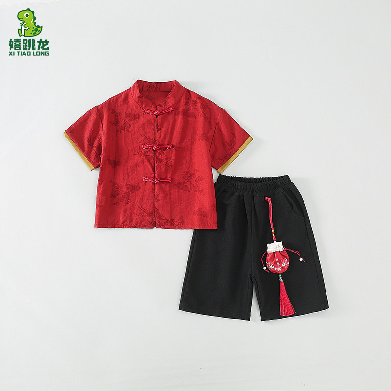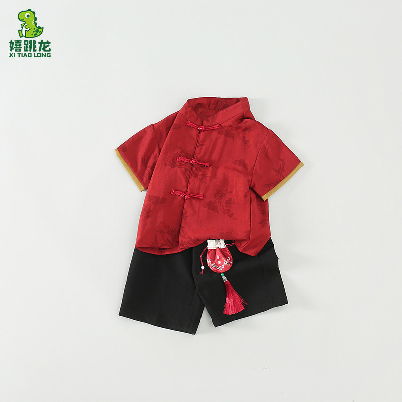 📚 儿童汉服男童新中式唐装夏款宝宝周岁礼服女小童夏季红色旗袍礼服