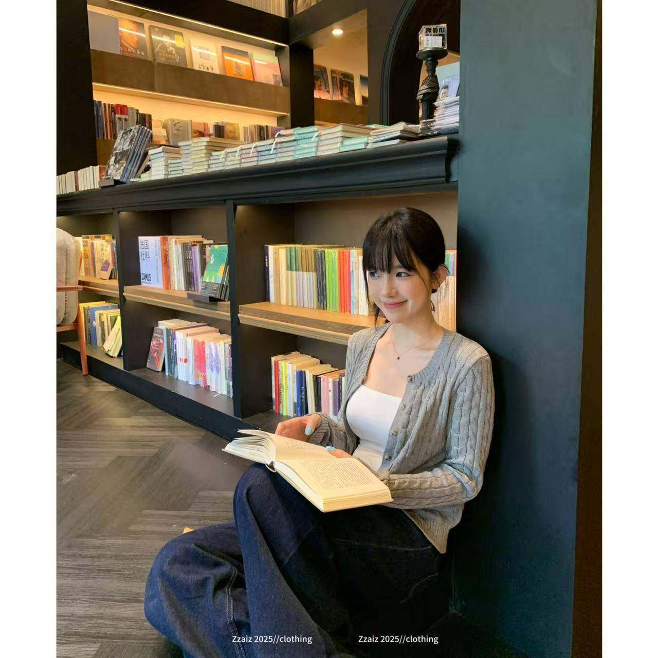 📚 Zzaiz 经典圆领早秋针织小开衫外套早春简约外搭显瘦百搭上衣女~
