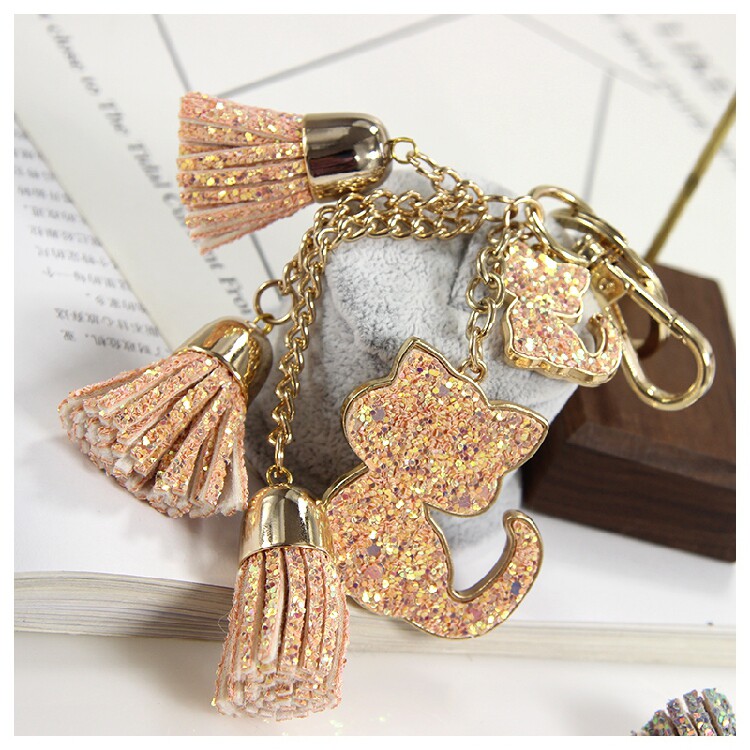 📚 宝贝王瑞欧美外贸饰品日韩首饰韩版多色猫咪亮片钥匙扣JJ04