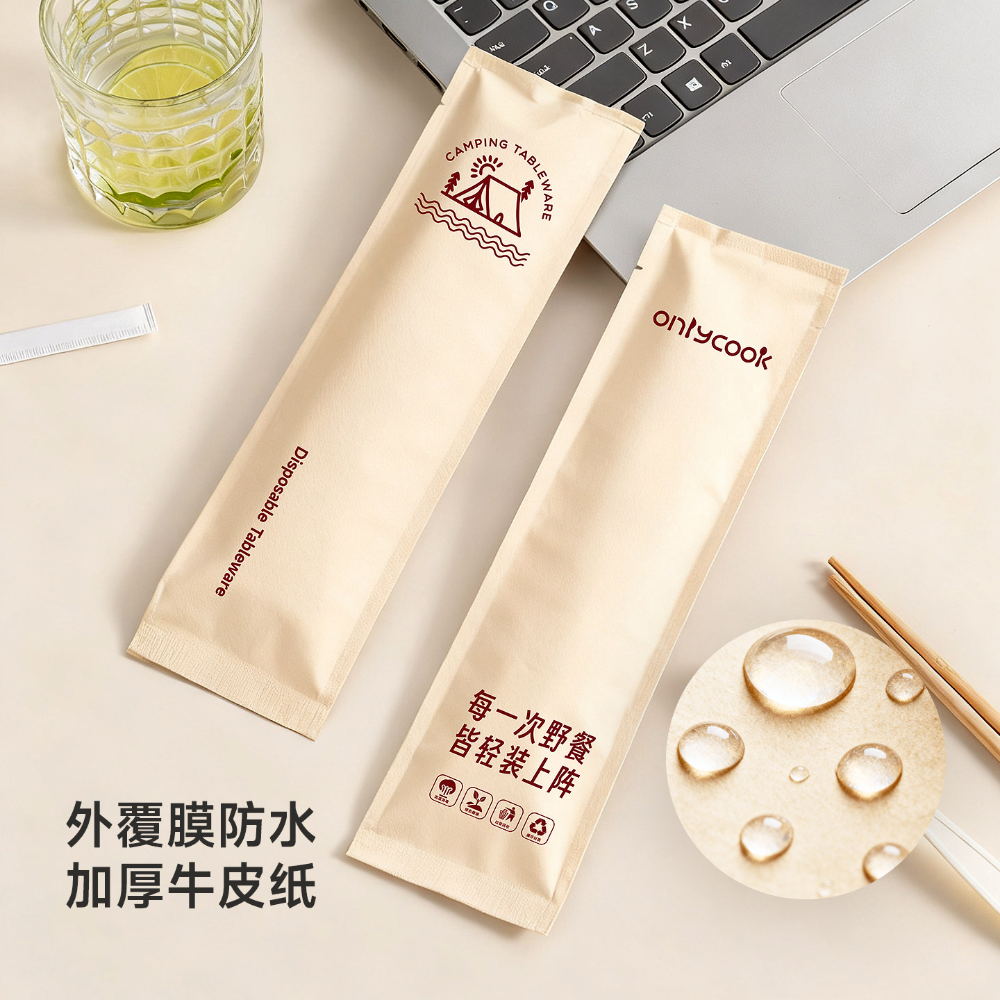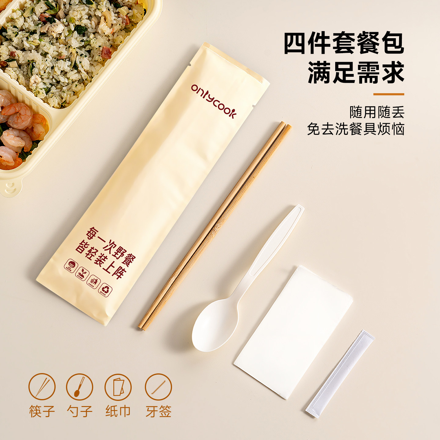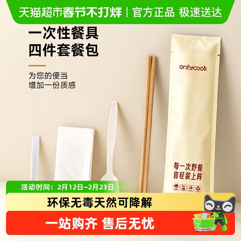 📚 onlycook一次性筷子勺子餐具四件套食品级户外露营牛皮纸独立包装