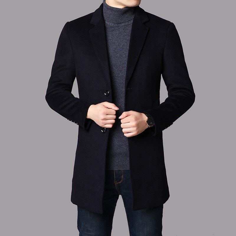 📚 男士双面羊绒大衣中长款西服毛呢子外套秋冬季中款风衣羊毛西装男