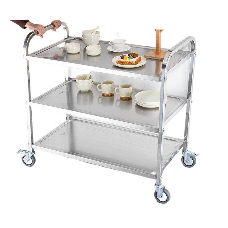 📚 不锈钢用餐TKD车加收碗声车餐商厅厚三层收碗车移动上菜车双层无