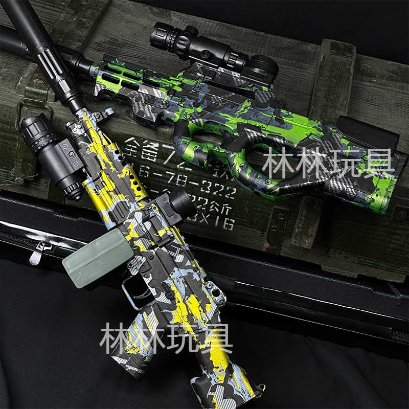 📚 全自动P90冲锋水晶电动连发儿童男孩玩具仿真短剑手自一体软弹枪