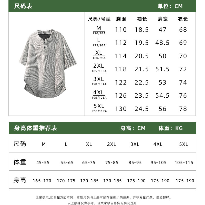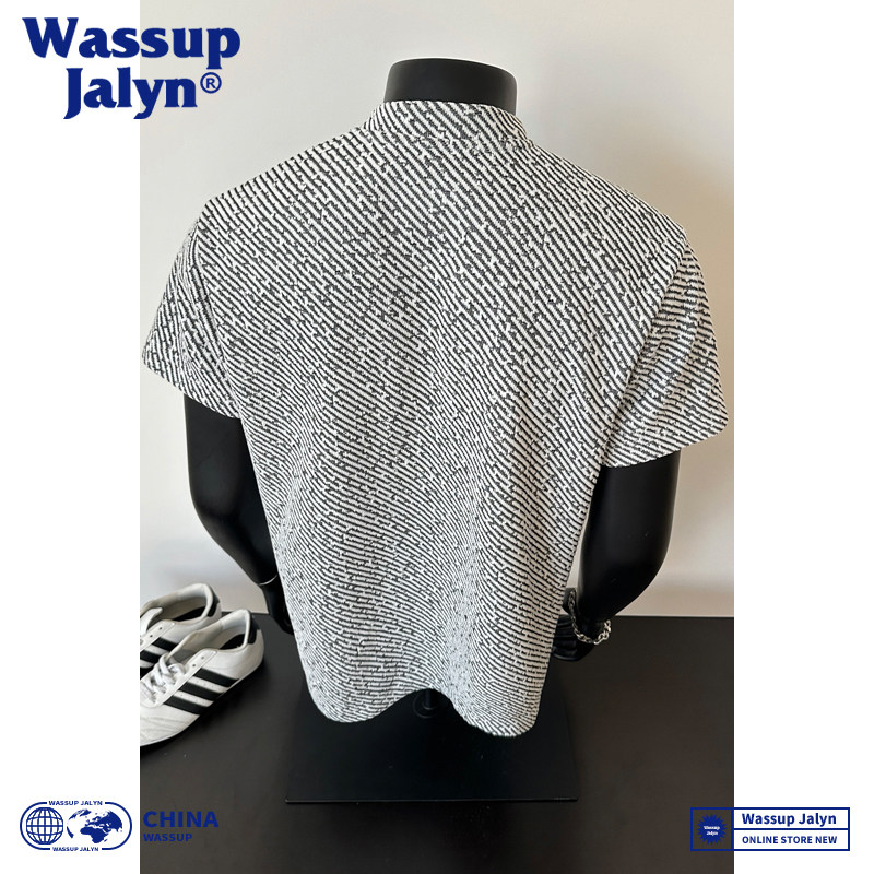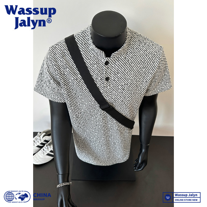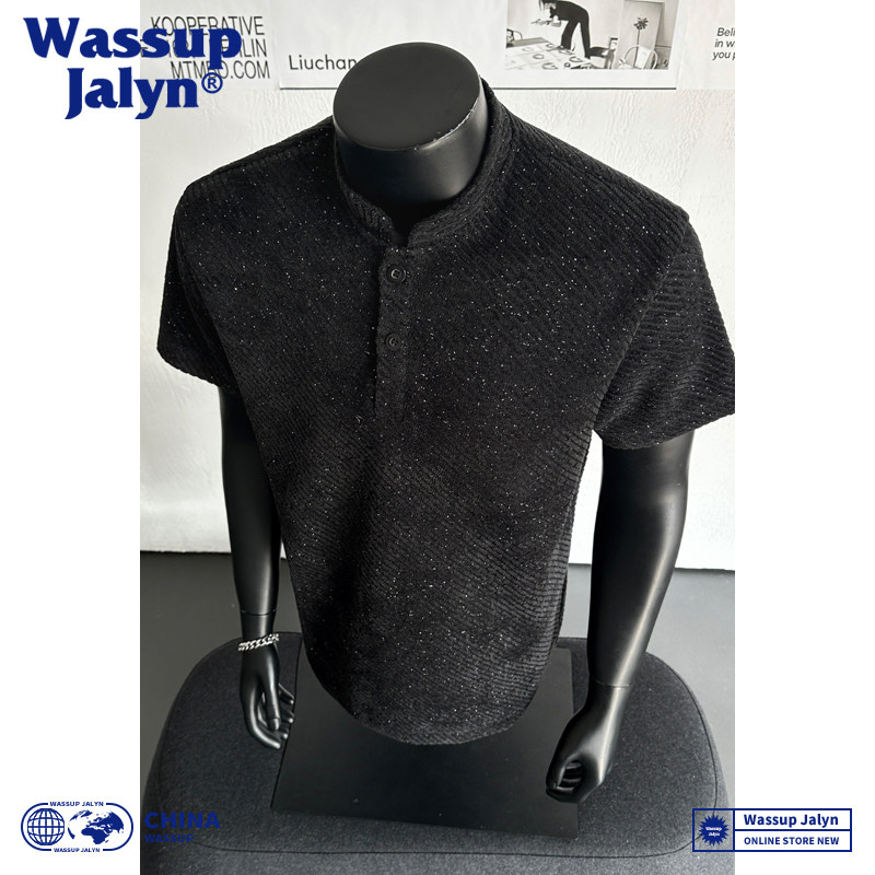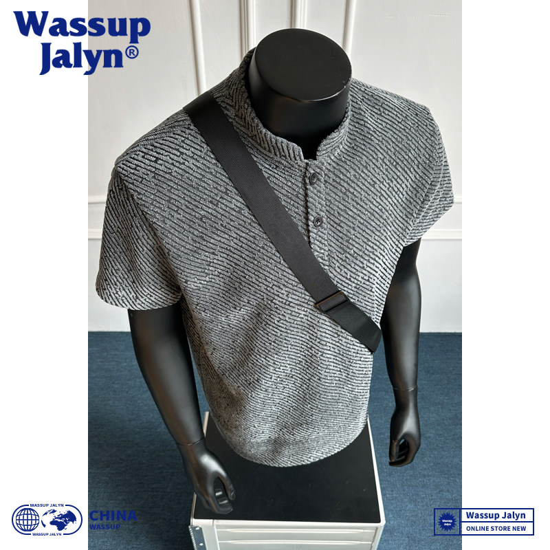 📚 WASSUP JALYN美式亨利领短袖T恤男夏季潮牌宽松休闲青年排扣半袖