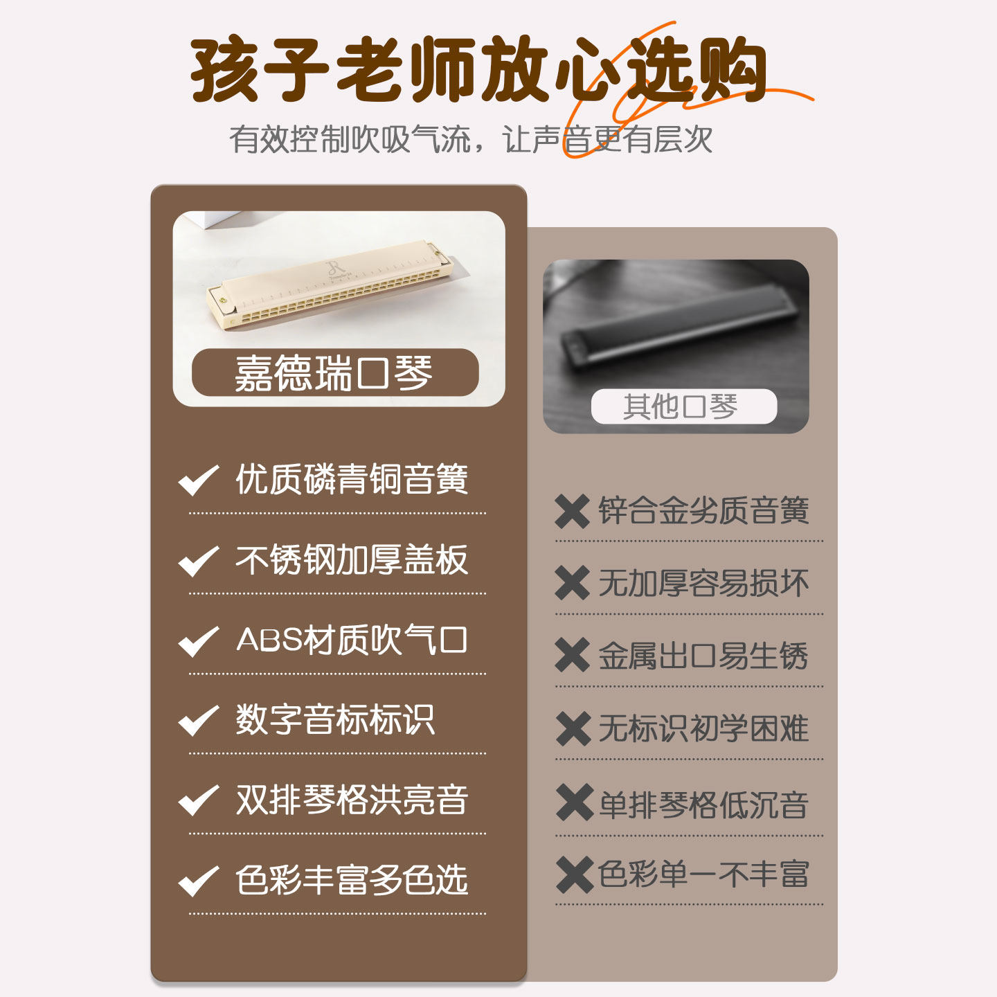 📚 嘉德瑞口琴儿童24孔复音c调官方旗舰店初学者入门成人专业演奏级