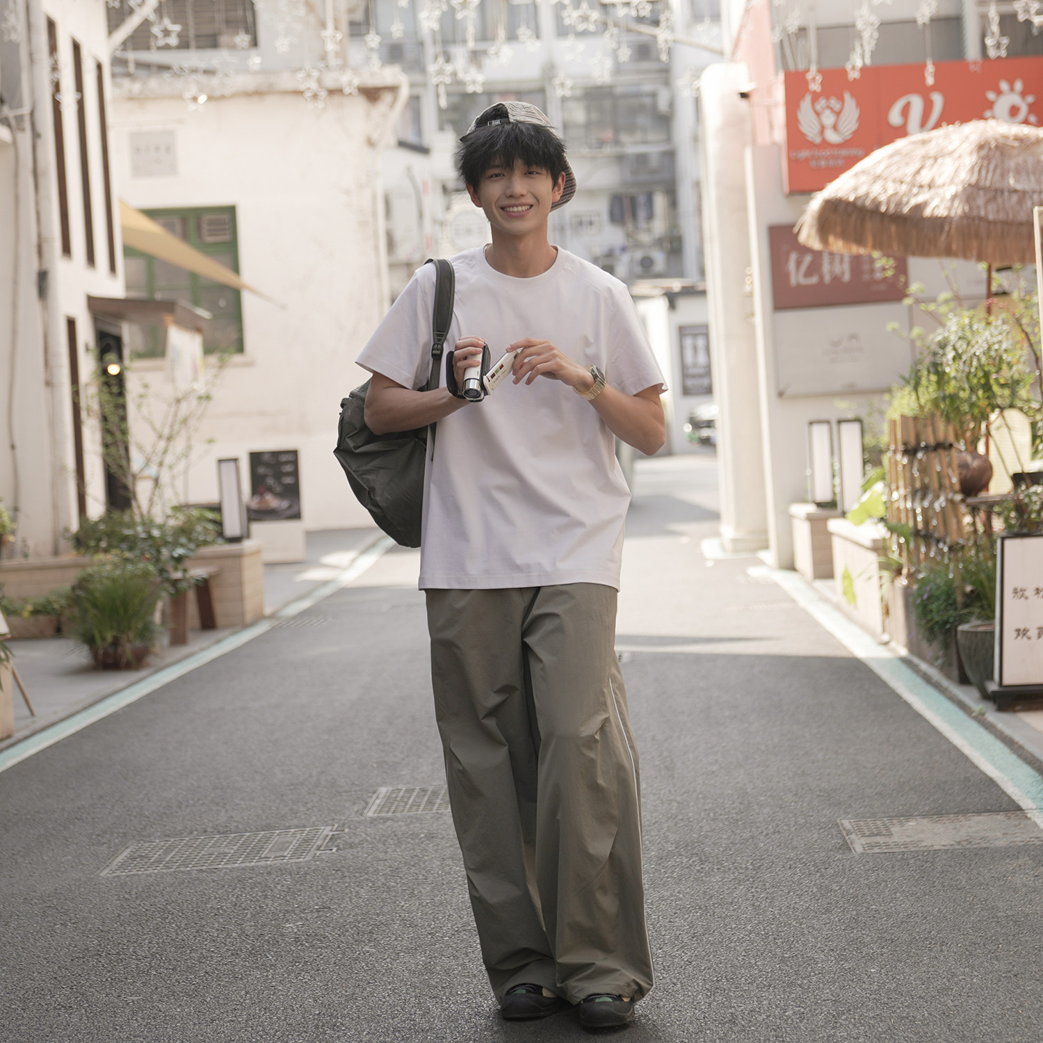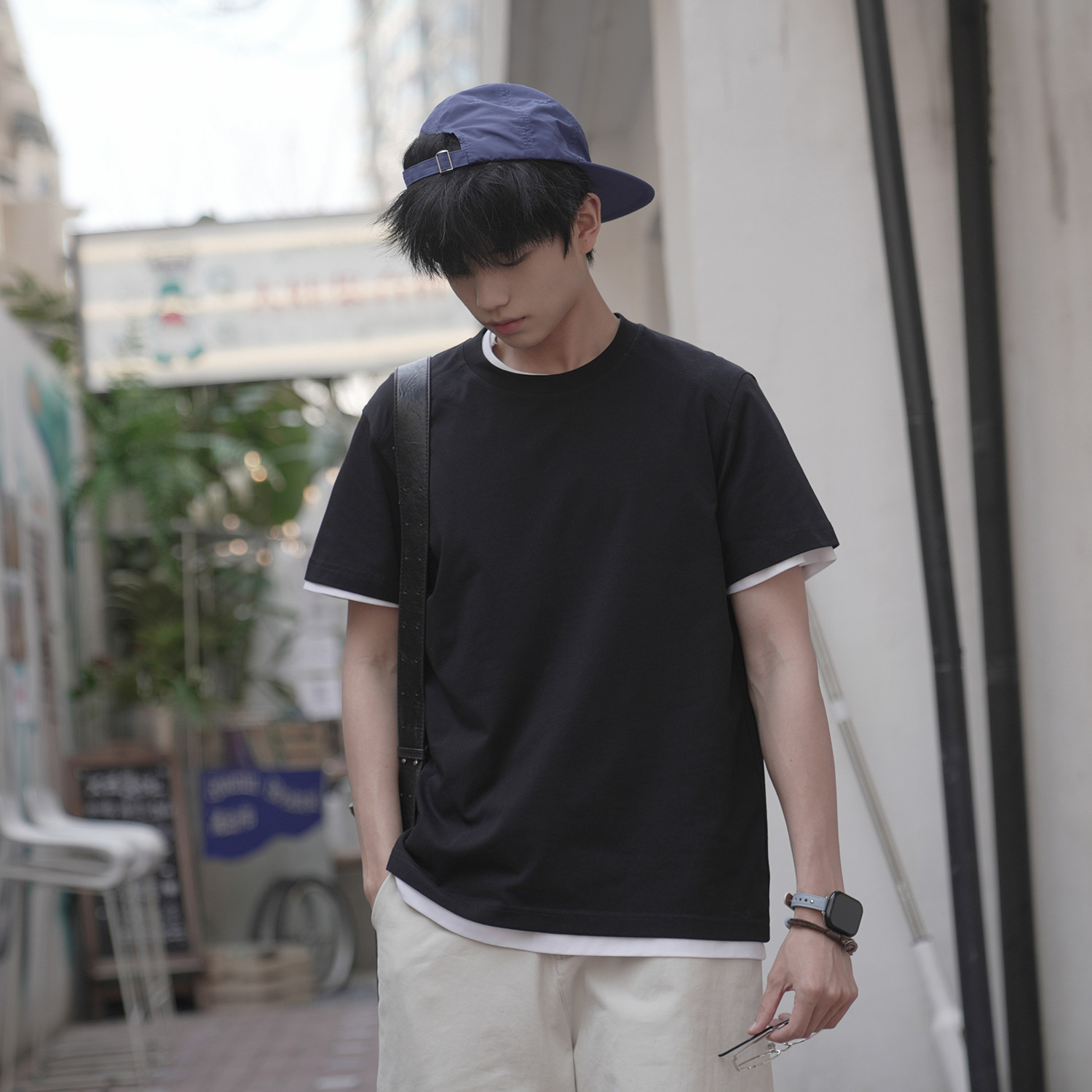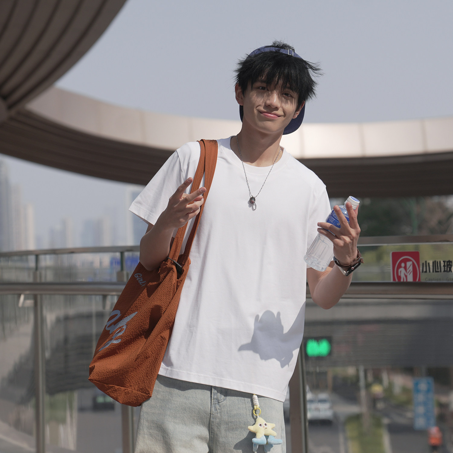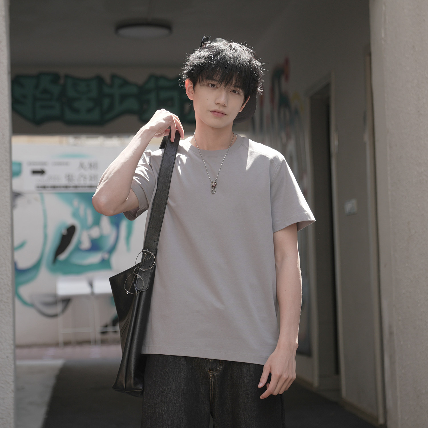 📚 【凉感230g克隆棉】男装基础款纯色短袖T恤宽松落肩百搭上衣夏季