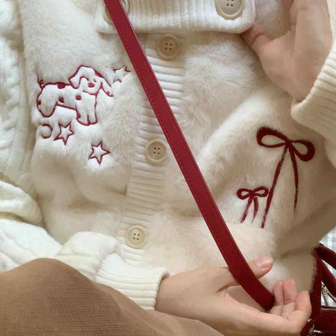 📚 小个子短款夹棉兔毛毛外套女秋冬季新款上衣加绒加厚拼接毛衣开衫