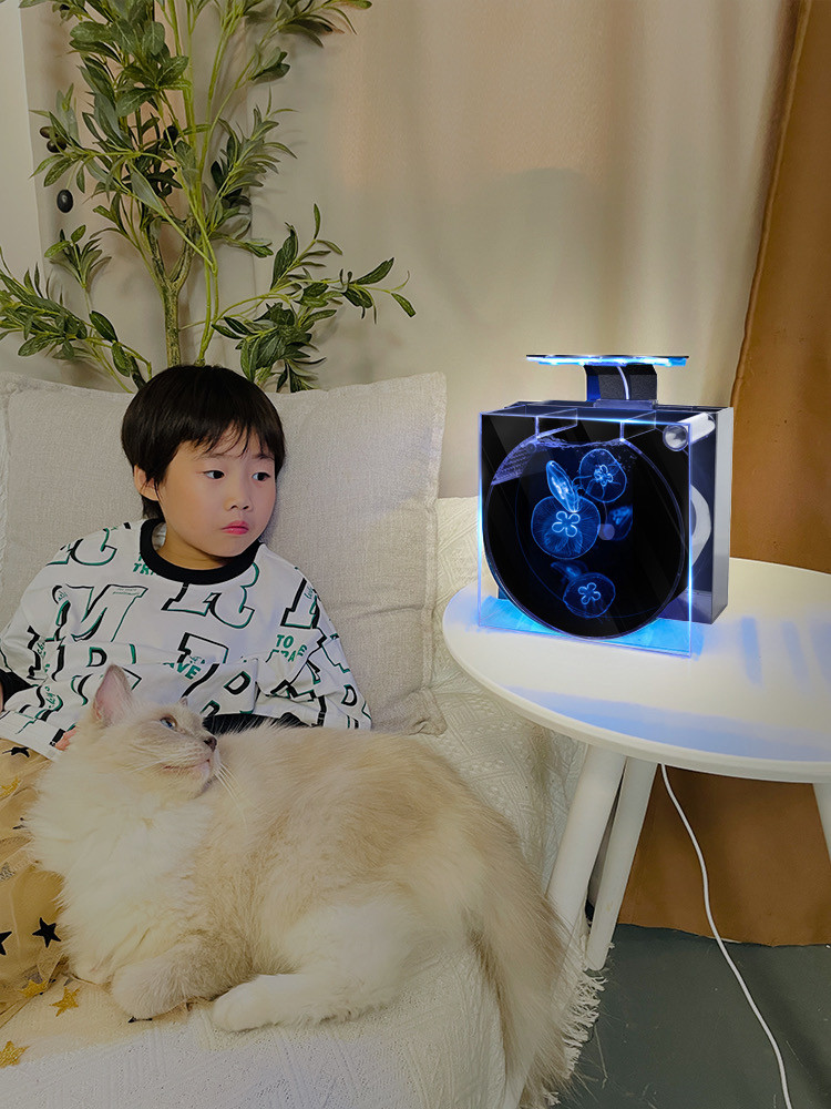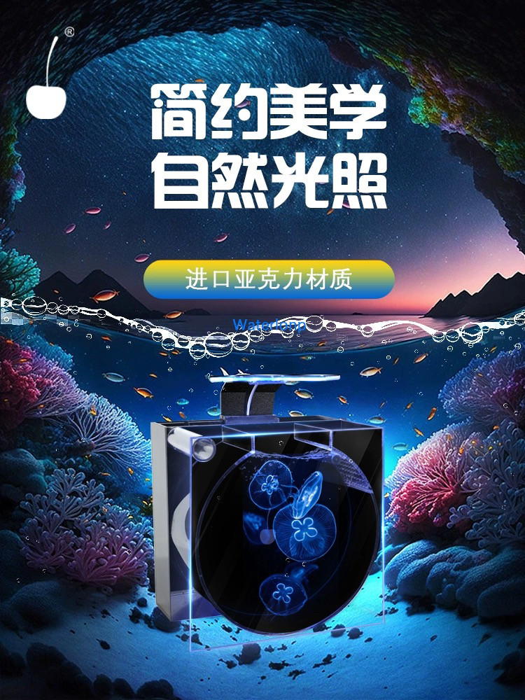 📚 网红樱桃水母缸O12鱼缸水族箱12升摆摊展示缸桌面专业水母养殖缸