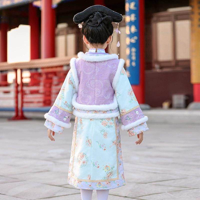 📚 格格服女童秋冬古装旗袍2025新款儿童加厚清朝汉服冬季满族拜年服
